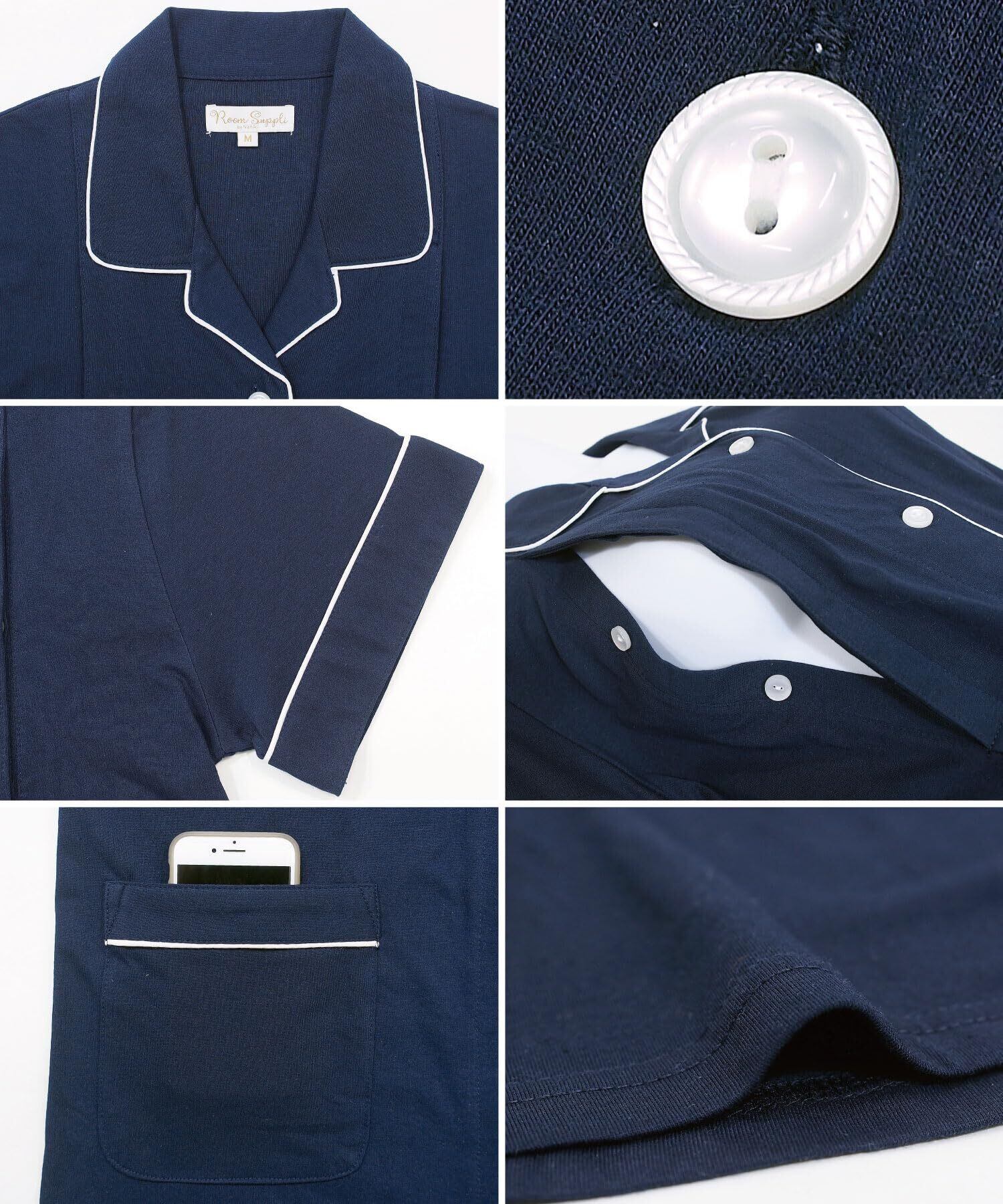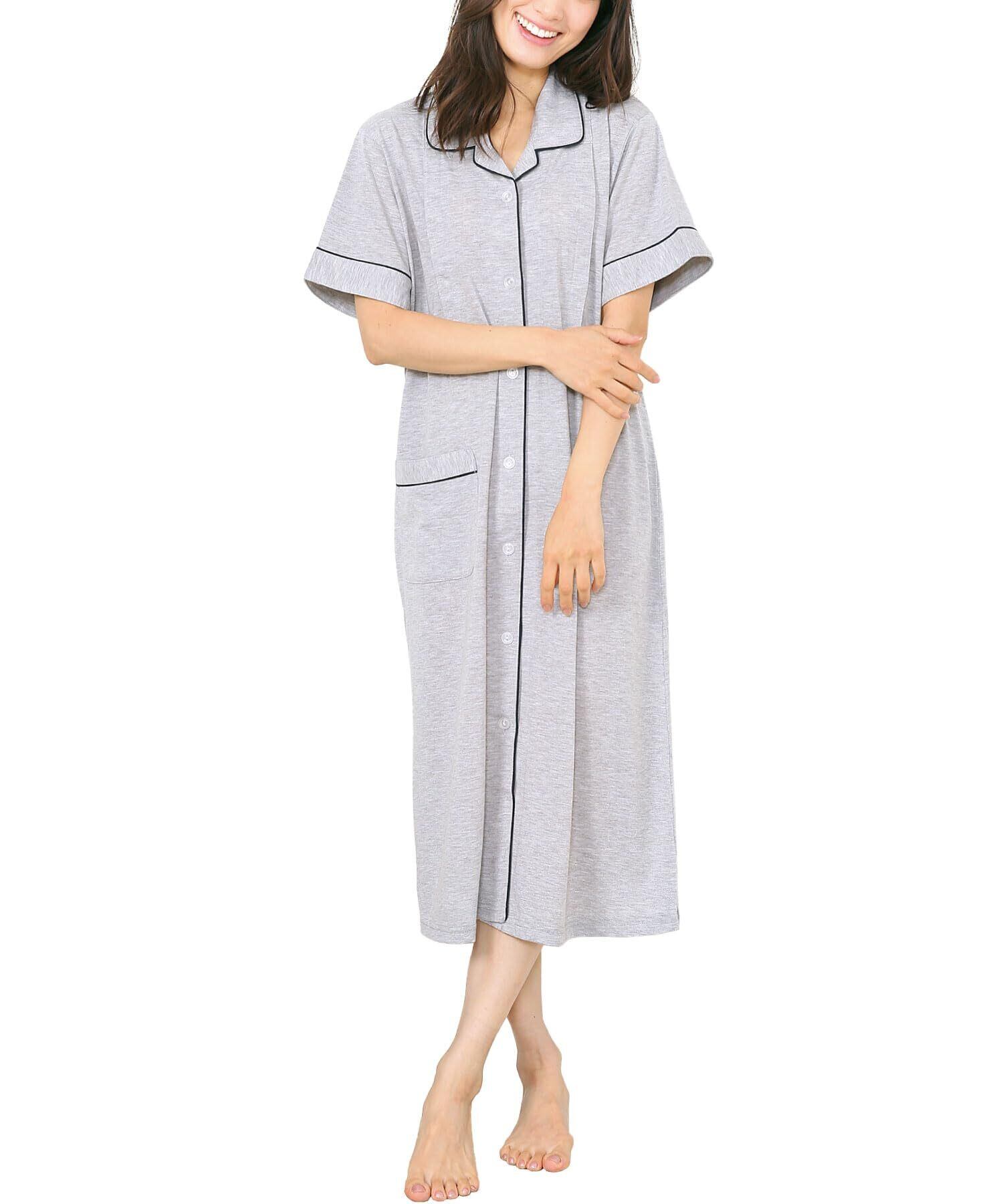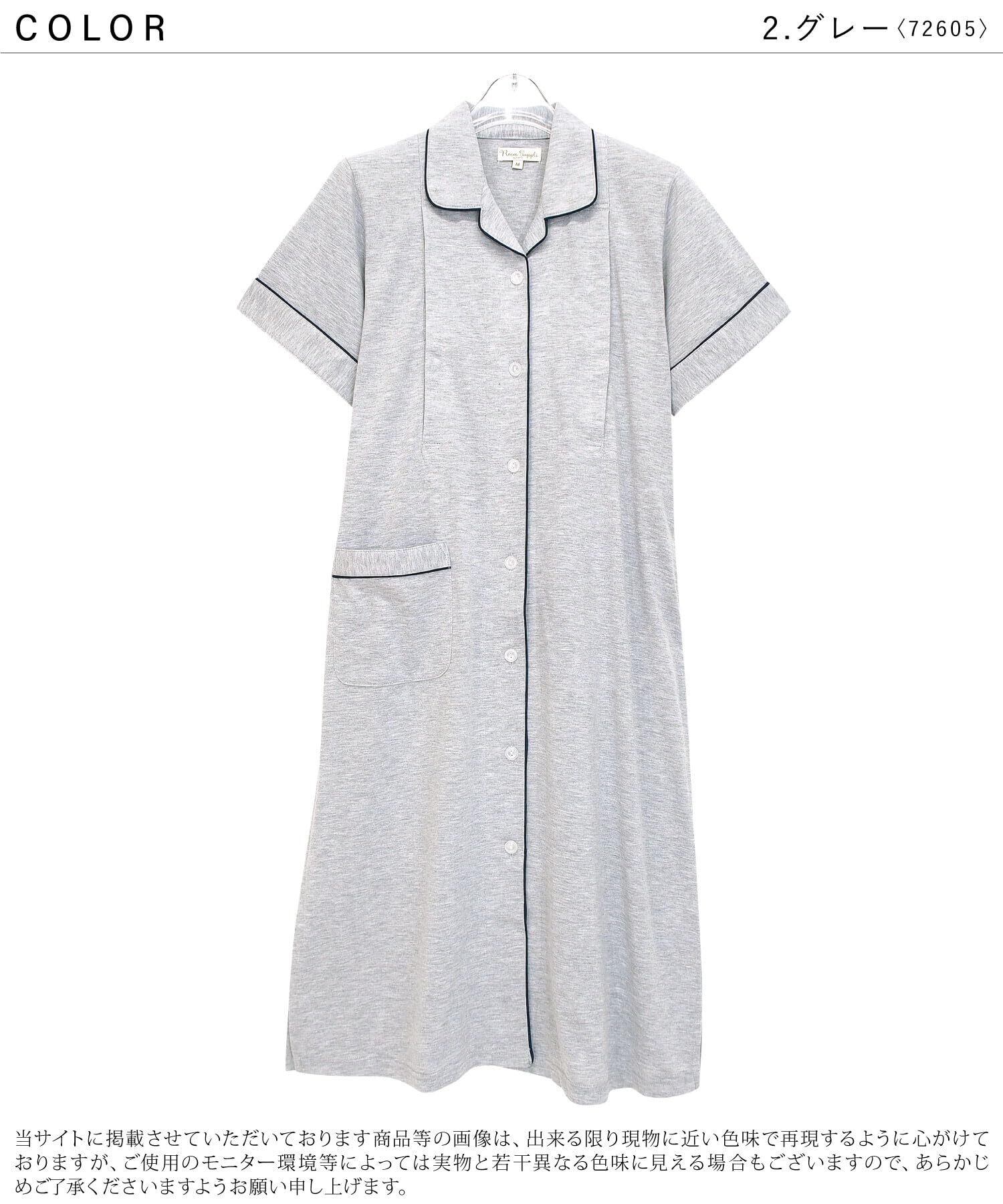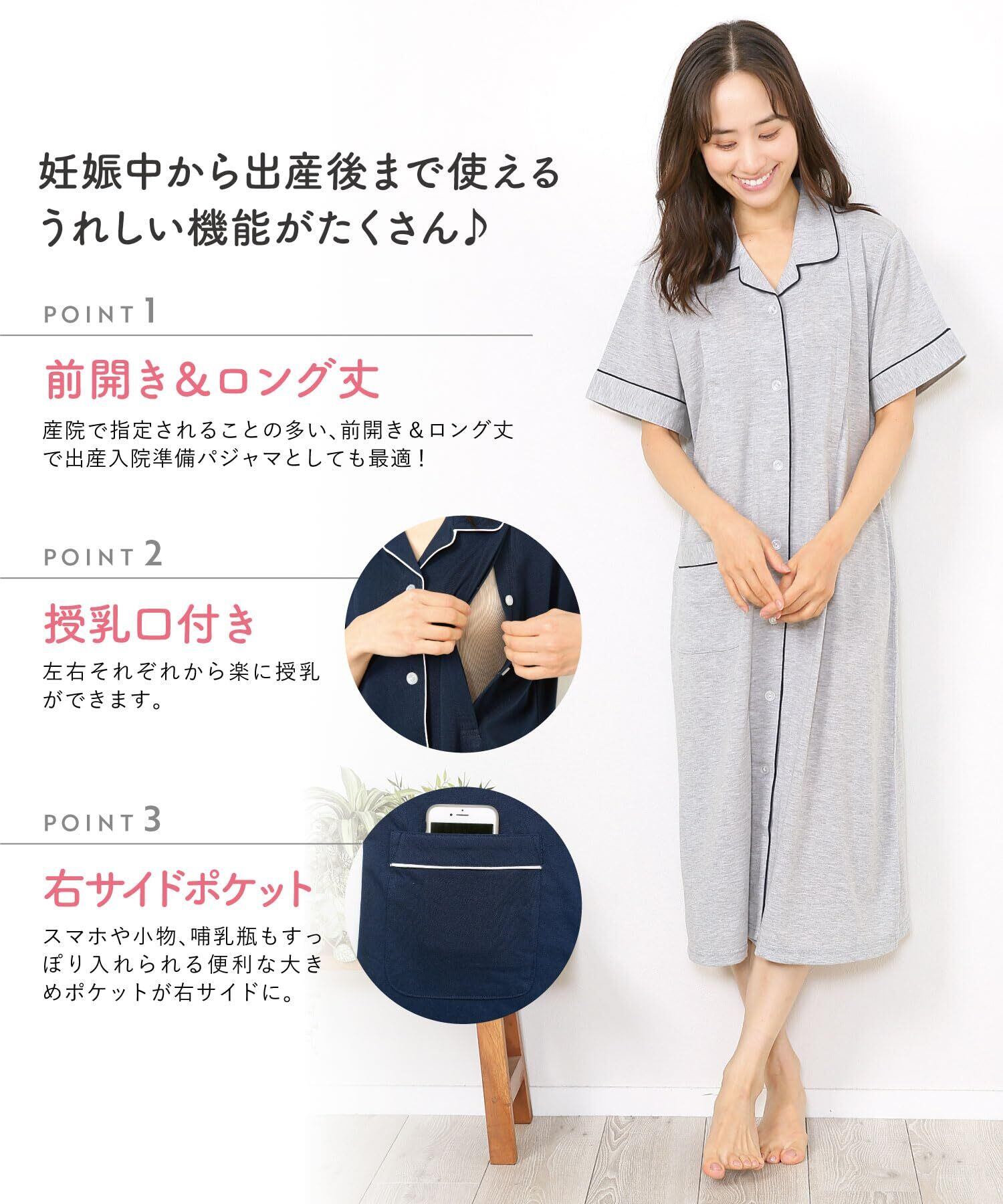 [ニシキ] マタニティ パジャマ 夏 半袖 ワンピース 授乳口付き 綿混 天竺ニット素材 前開き ロング丈 テーラー襟 授乳服 ネグリジェ マタニティウェア