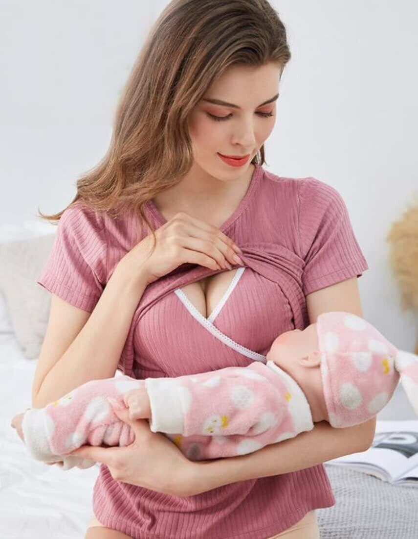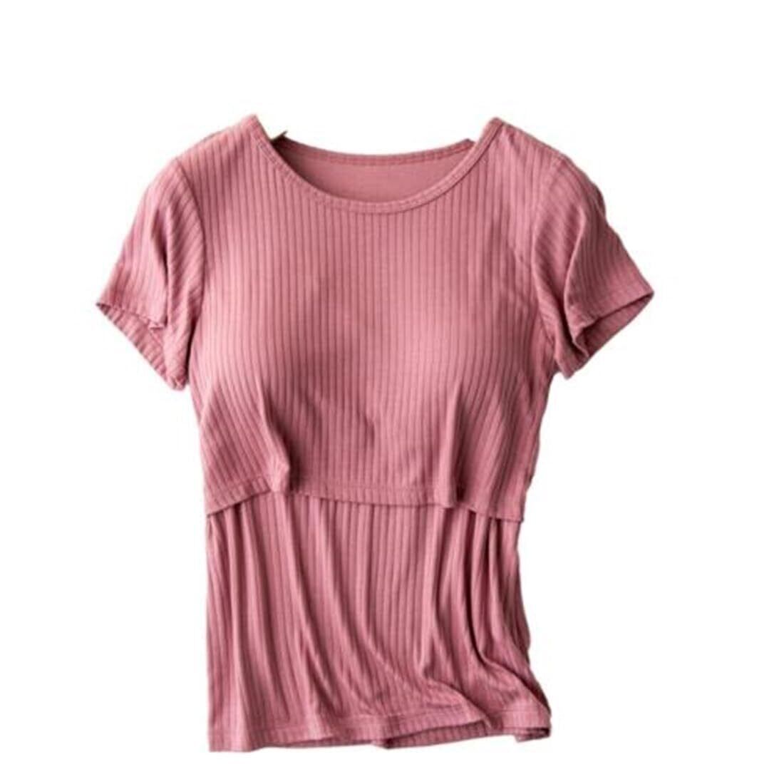 [ハグハグ ハニー] 授乳服 半袖 Tシャツ カップ付き 授乳口付き カットソー 授乳 トップス マタニティ ウエア