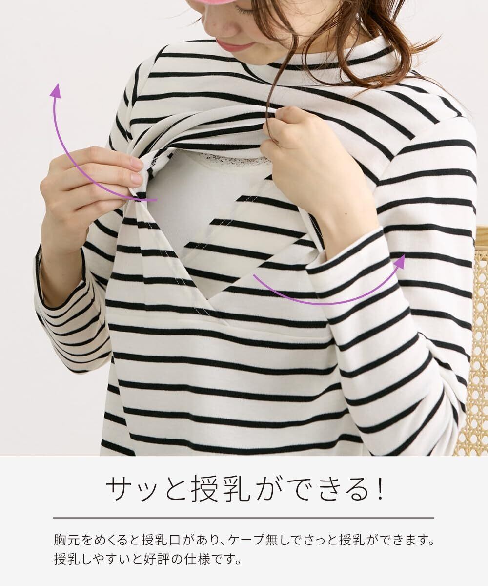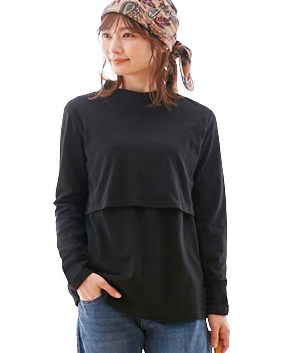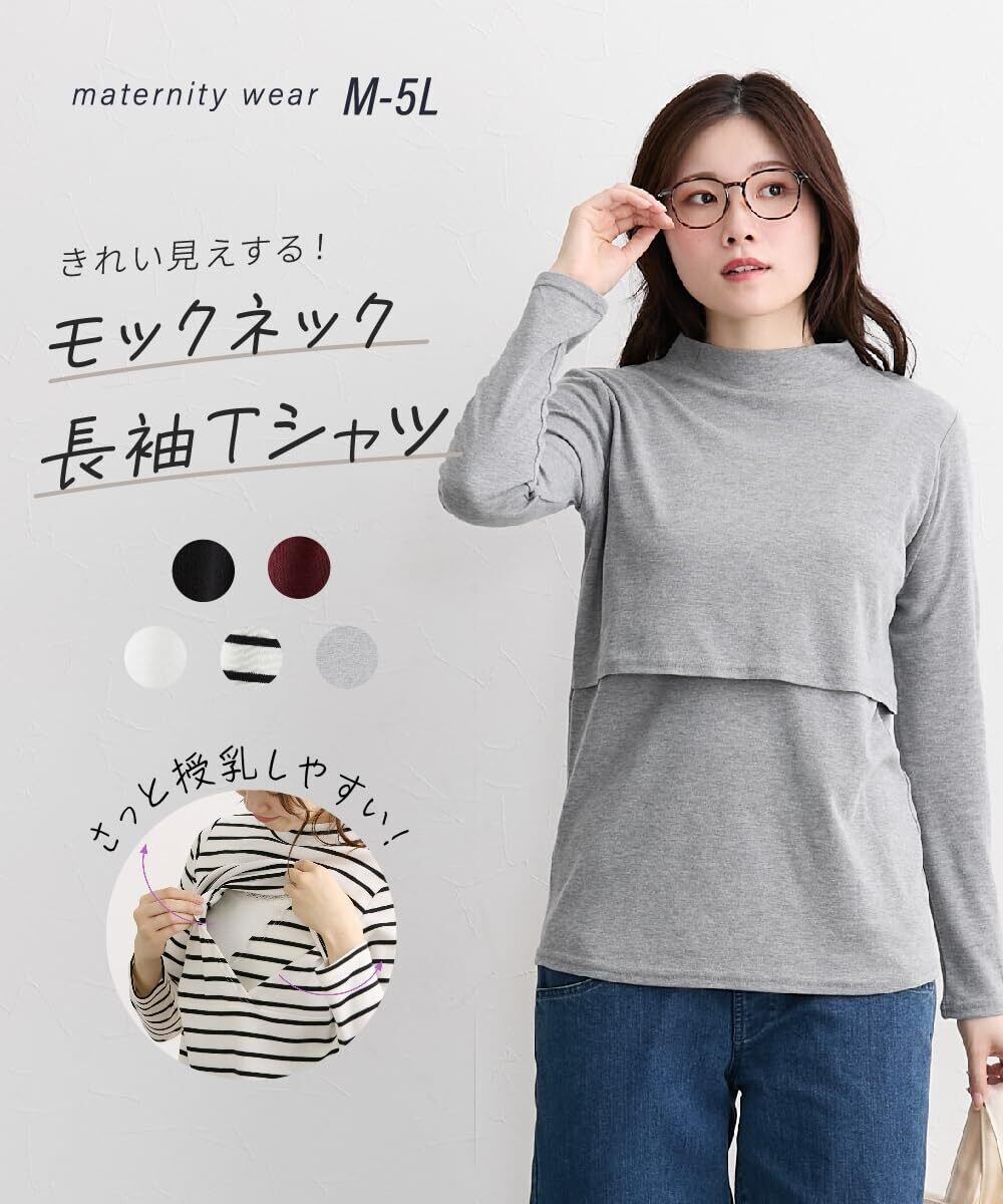 [ニッセン] マタニティTシャツ・カットソー 【産前・産後 授乳服】 授乳しやすい モックネック長袖マタニティTシャツ