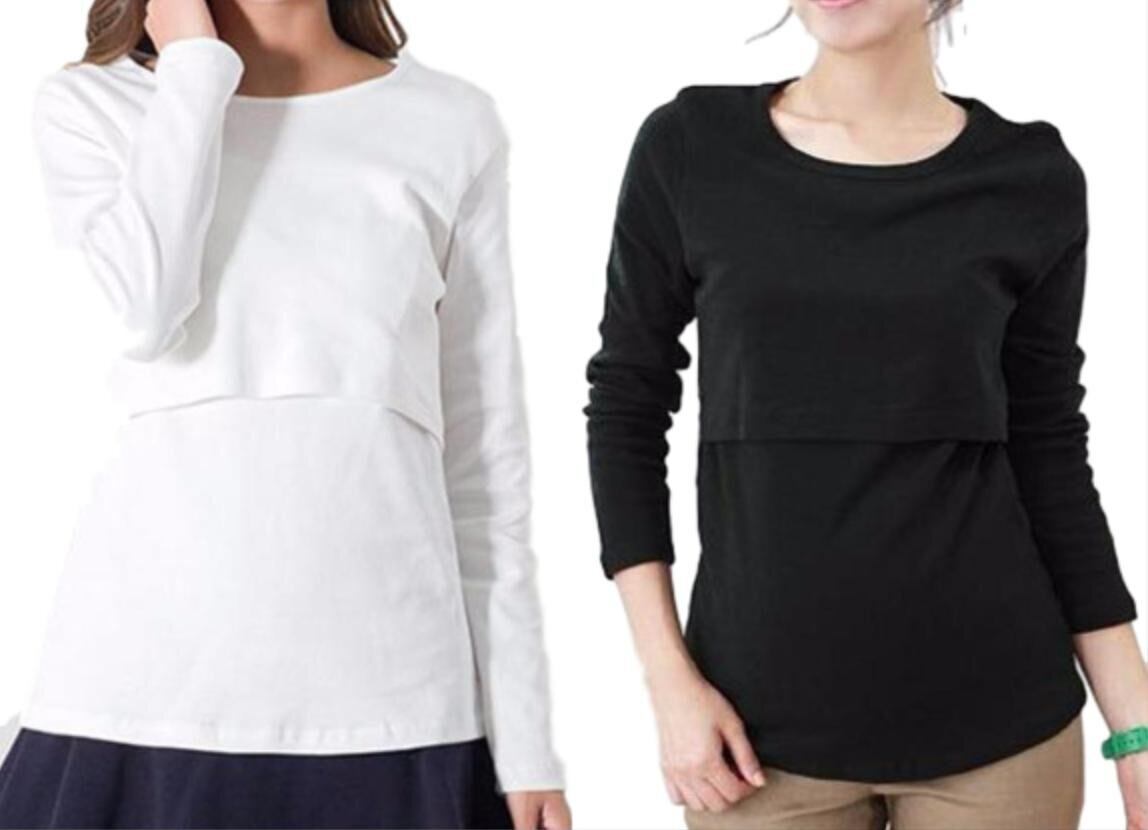 【2022最新】授乳服 授乳口付き 長袖 Tシャツ カットソー マタニティ ウエア 選べる カラー ロンT 2枚 セット