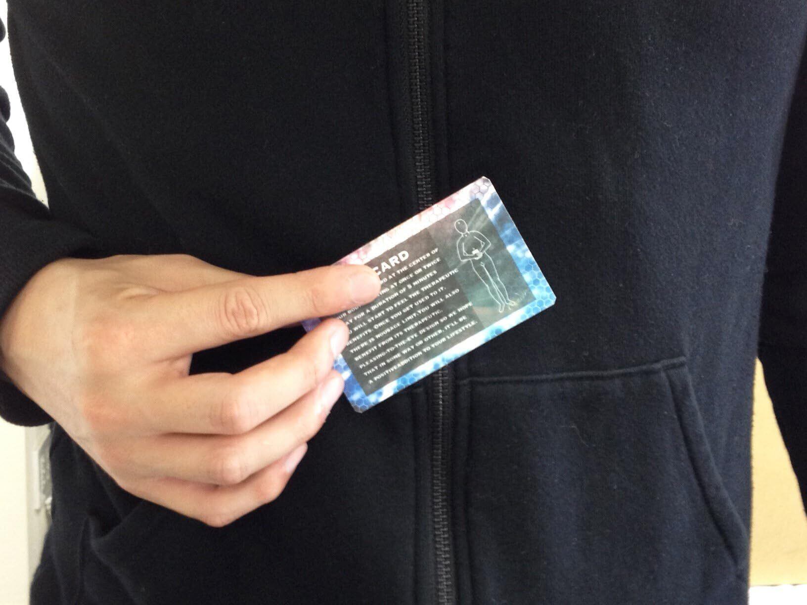 電磁波放電カードαはデザイン性も高く、特殊磁性体を素材に配合してあります。 又、耐久性を高め多少の折り曲げなどにも柔軟性を持たせた作りになっています。類似のプラスチックのみで出来たカードとは違います。
