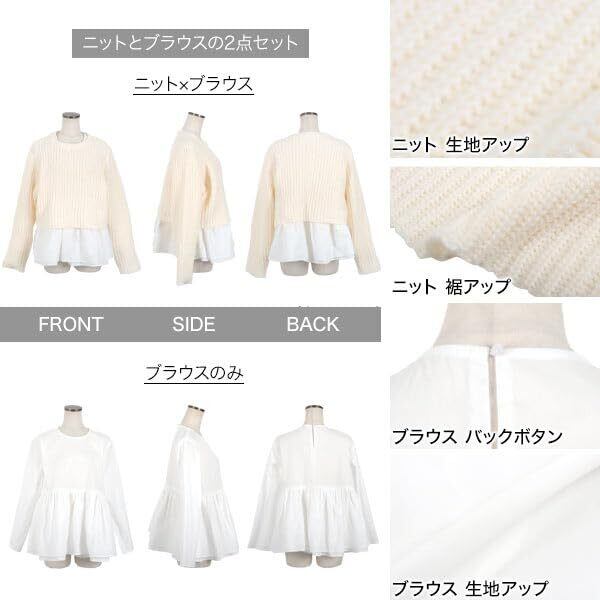 [神戸レタス][ プチレ ] 2点セット ニット × ブラウス セーター レディース フリルブラウス [N1089]