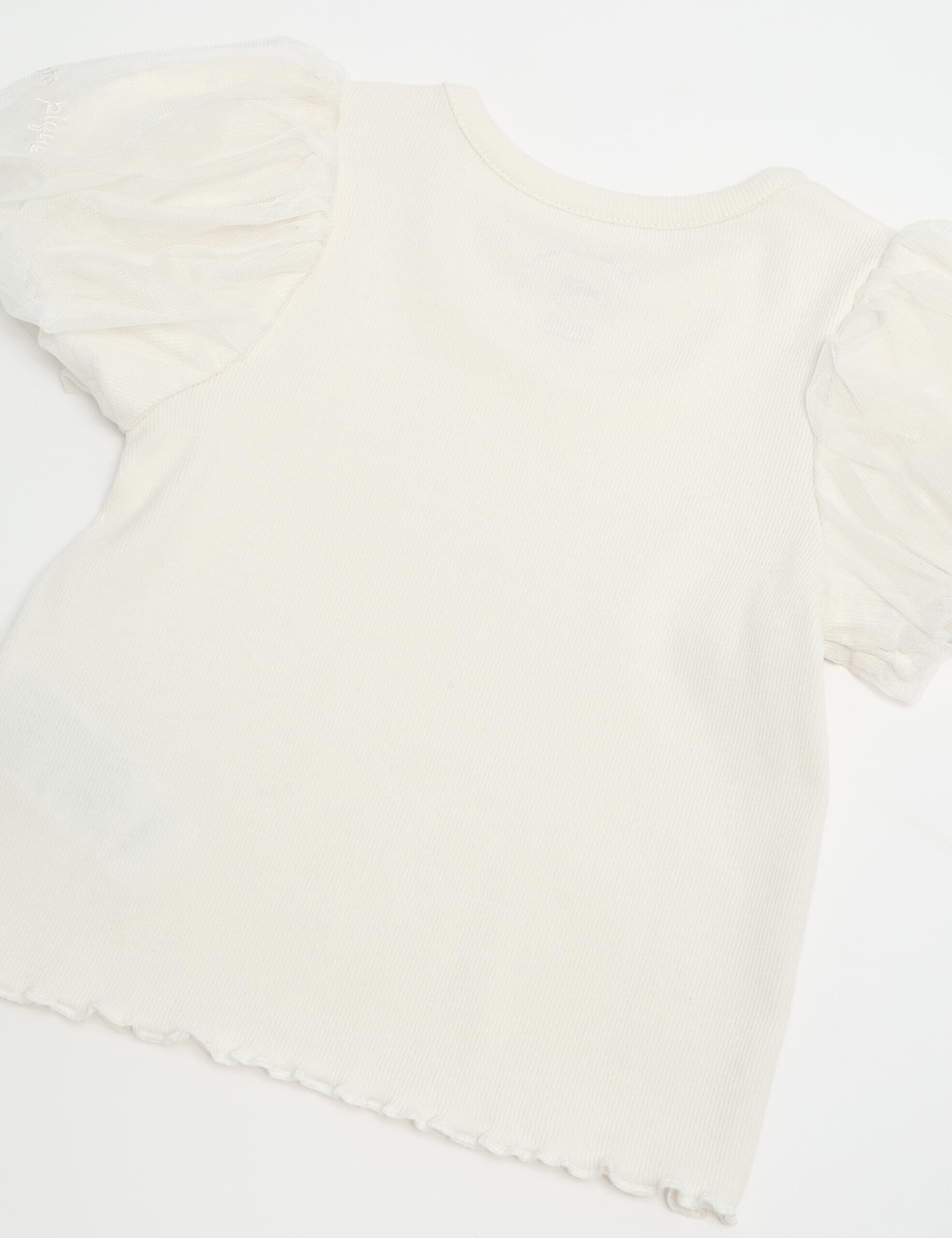 スター柄を散りばめたチュール素材と、柔らかなコットンのテレコ素材を使用した、ロマンティックなプルオーバー。