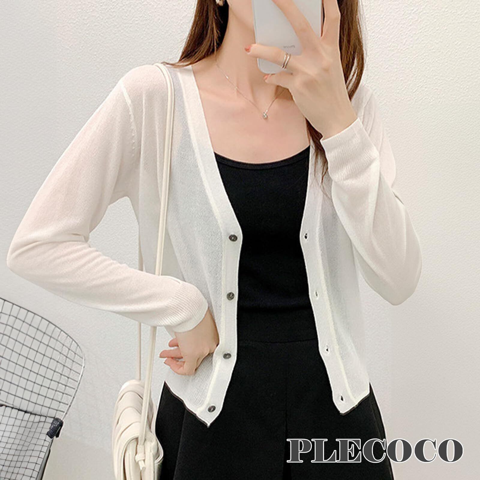 薄手の柔らかいニット素材のカーディガンです 薄手で軽いので、くるっと丸めて手軽に携帯できます。 外出時にさっと羽織れば、UVカット&季節の変わり目の寒暖差がある日も安心(^_-)-