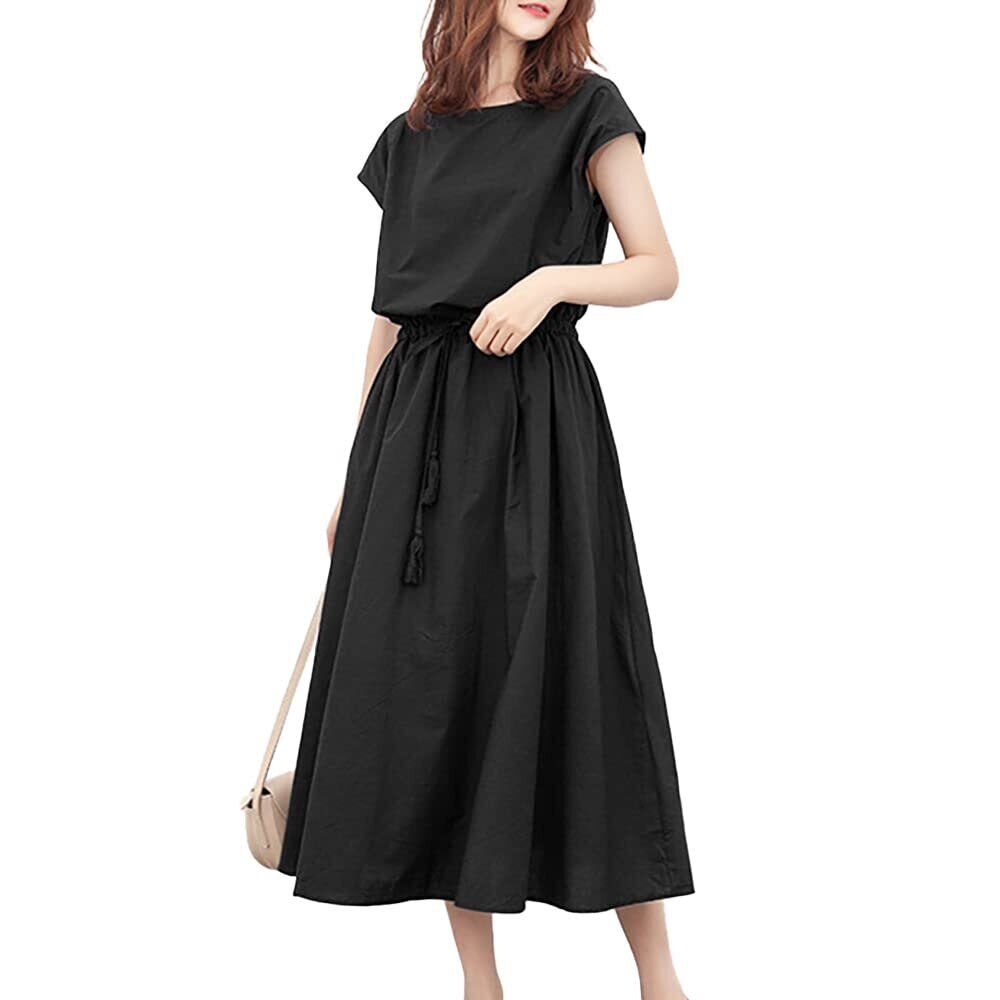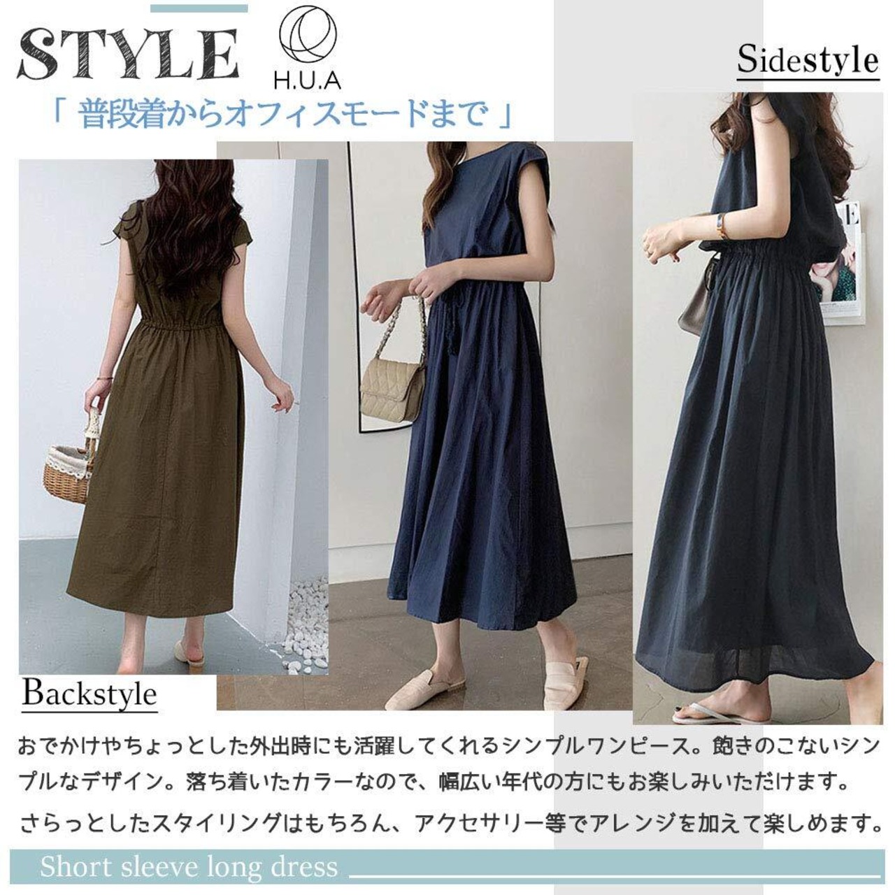 [H.U.A] [エイチユーエー] レディース ワンピース 半袖 フレア ゆったり マタニティ 可愛い ロング マキシ 春 夏 秋 6カラー M-2XL