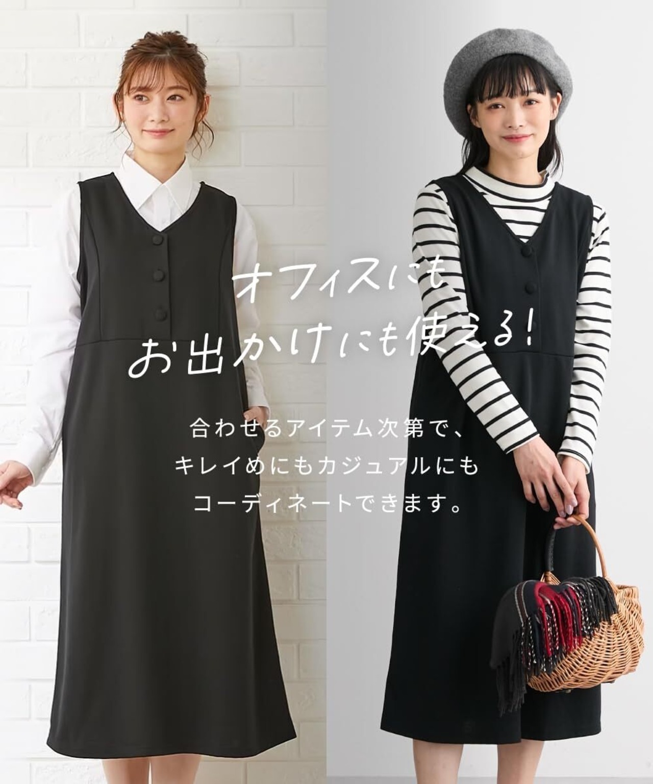 [ニッセン] フォーマルドレス・スーツ 【産前・産後 授乳服】 カットソーポンチ 事務服としても使えるジャンパースカート