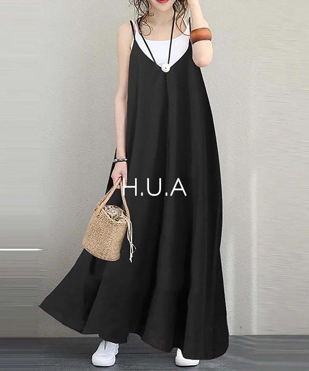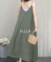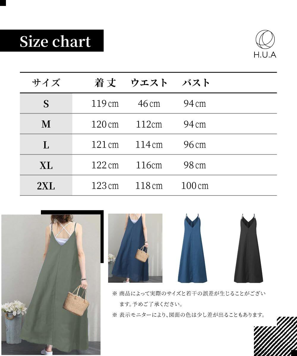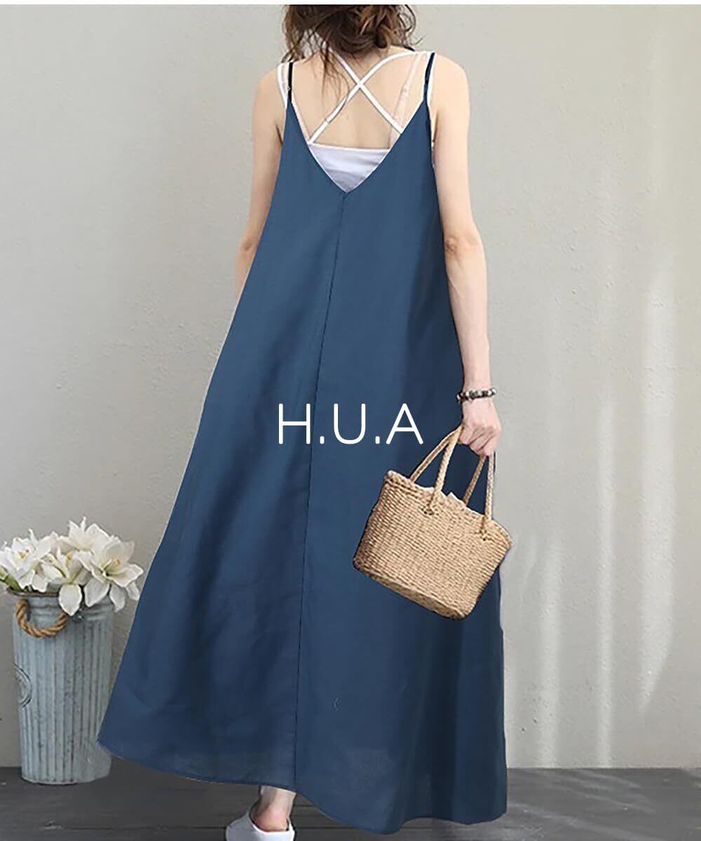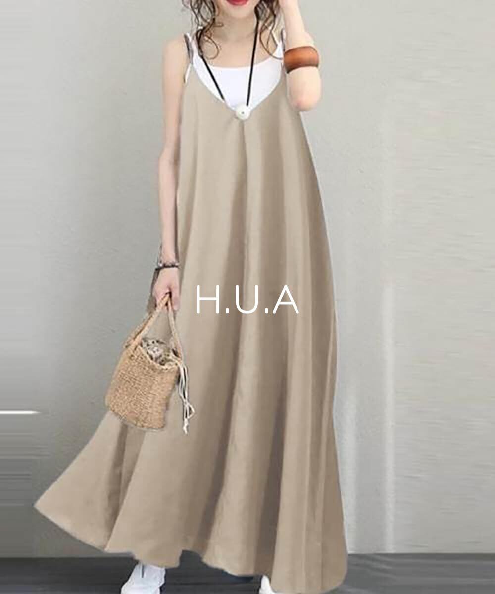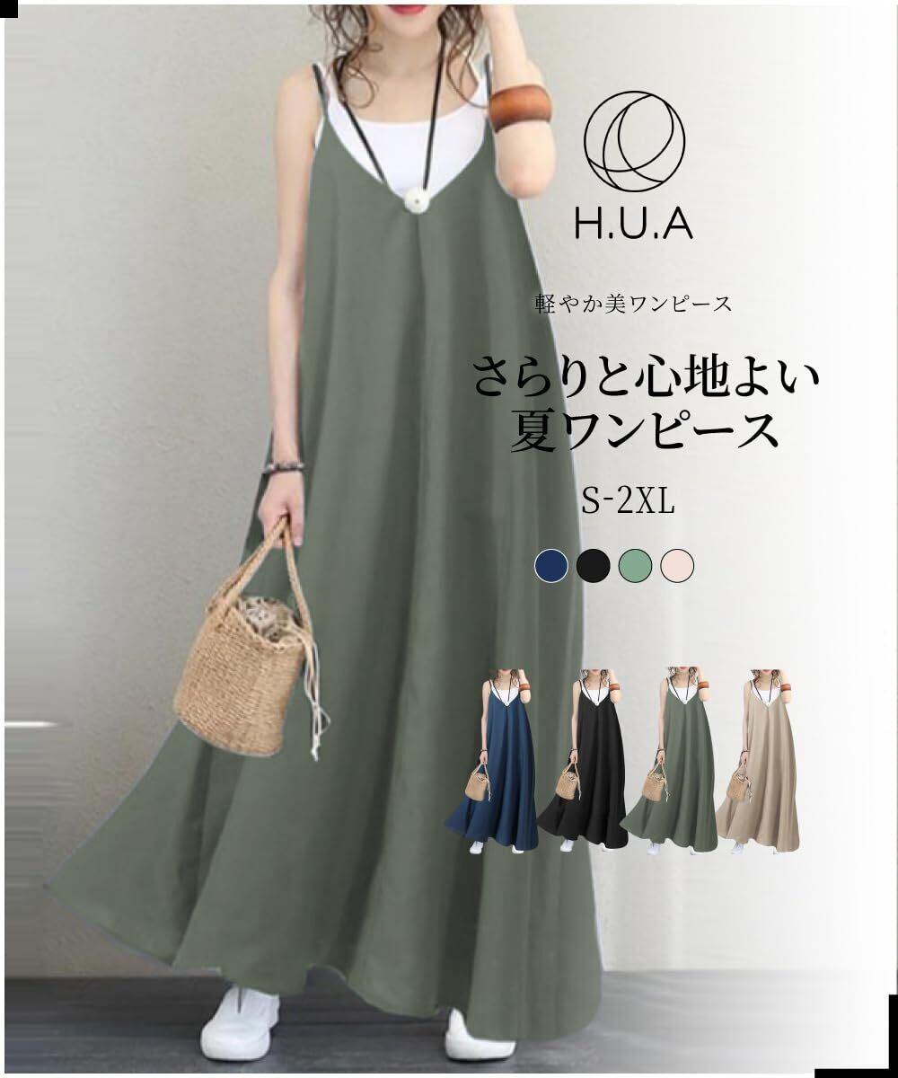【人気商品】[H.U.A] レディース キャミワンピース ワンピース 肩ひも調整 肩紐アジャスター ロングワンピース 春 夏