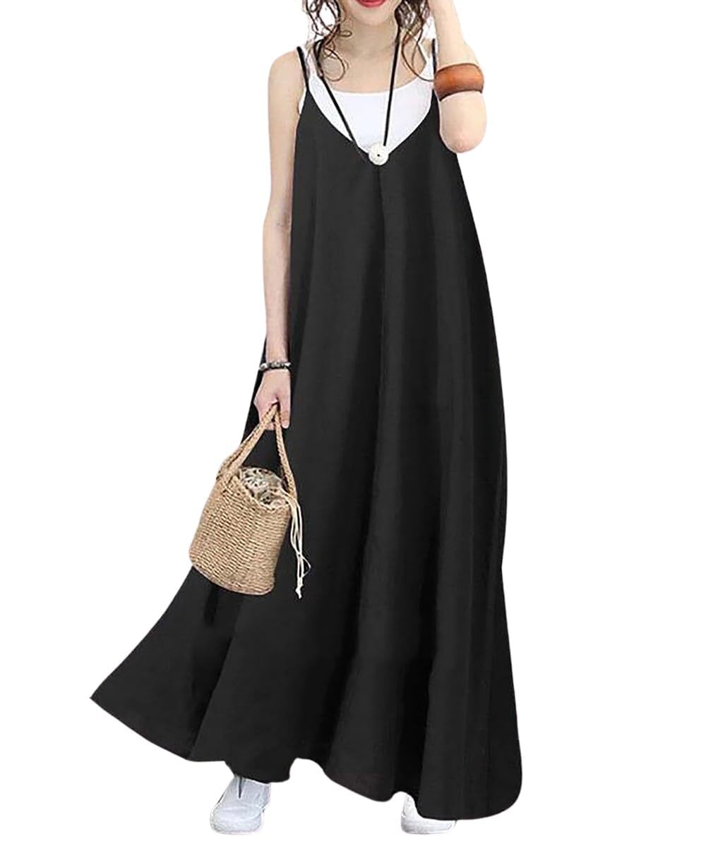 [H.U.A] レディース キャミワンピース ワンピース 肩ひも調整 肩紐アジャスター ロングワンピース 春 夏