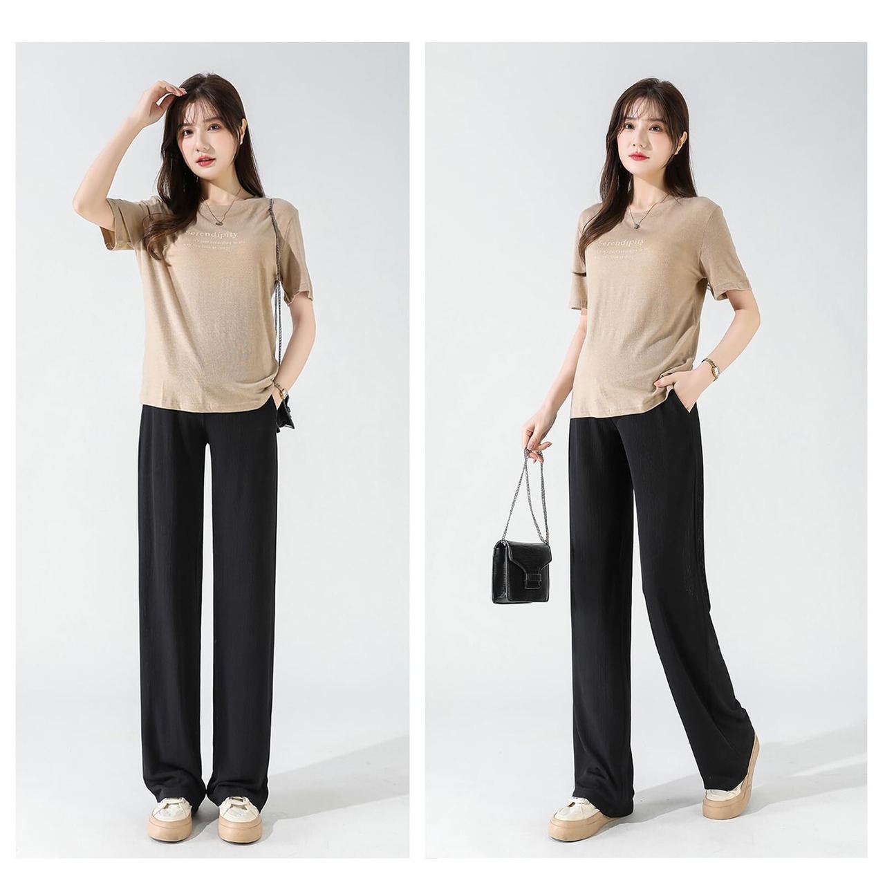 【綺麗なシルエット】マタニティのために設計されたウェスト調整パンツです。フロントにお腹の部分はu型リブ仕様で、弾力性に優れて圧迫しません。着やせ効果と足長効果に効き、360°から見ても綺麗なシルエットになります。