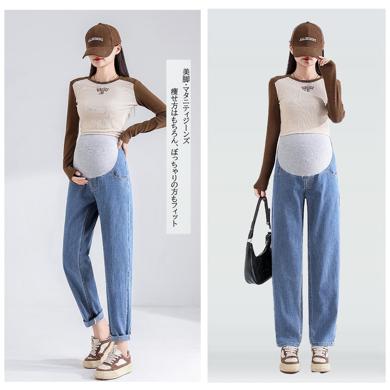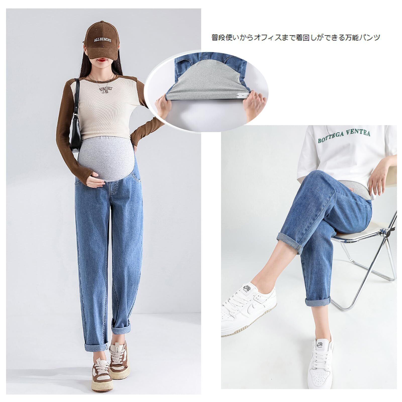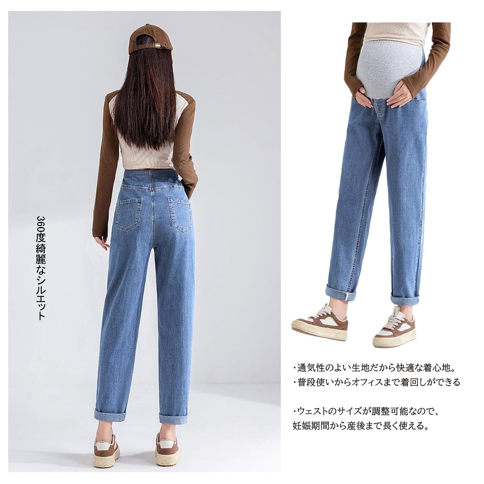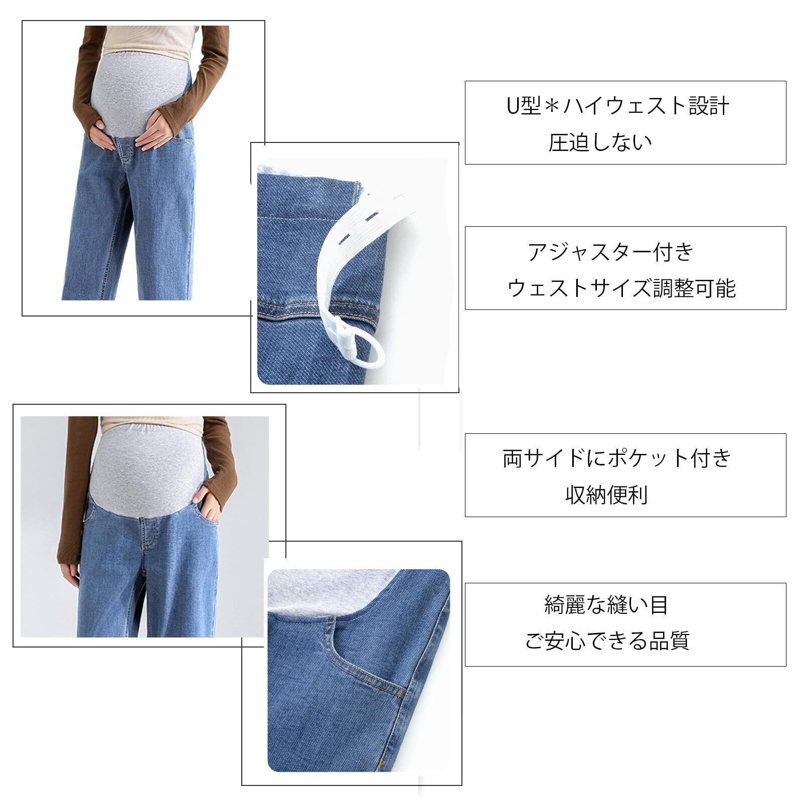 [Onabebi] マタニティパンツ 妊娠のズボン ジーンズ デニム ウエスト調整 ポケット付き 美ライン カジュアル 足長効果 薄手 体型カバー 着痩せ効果