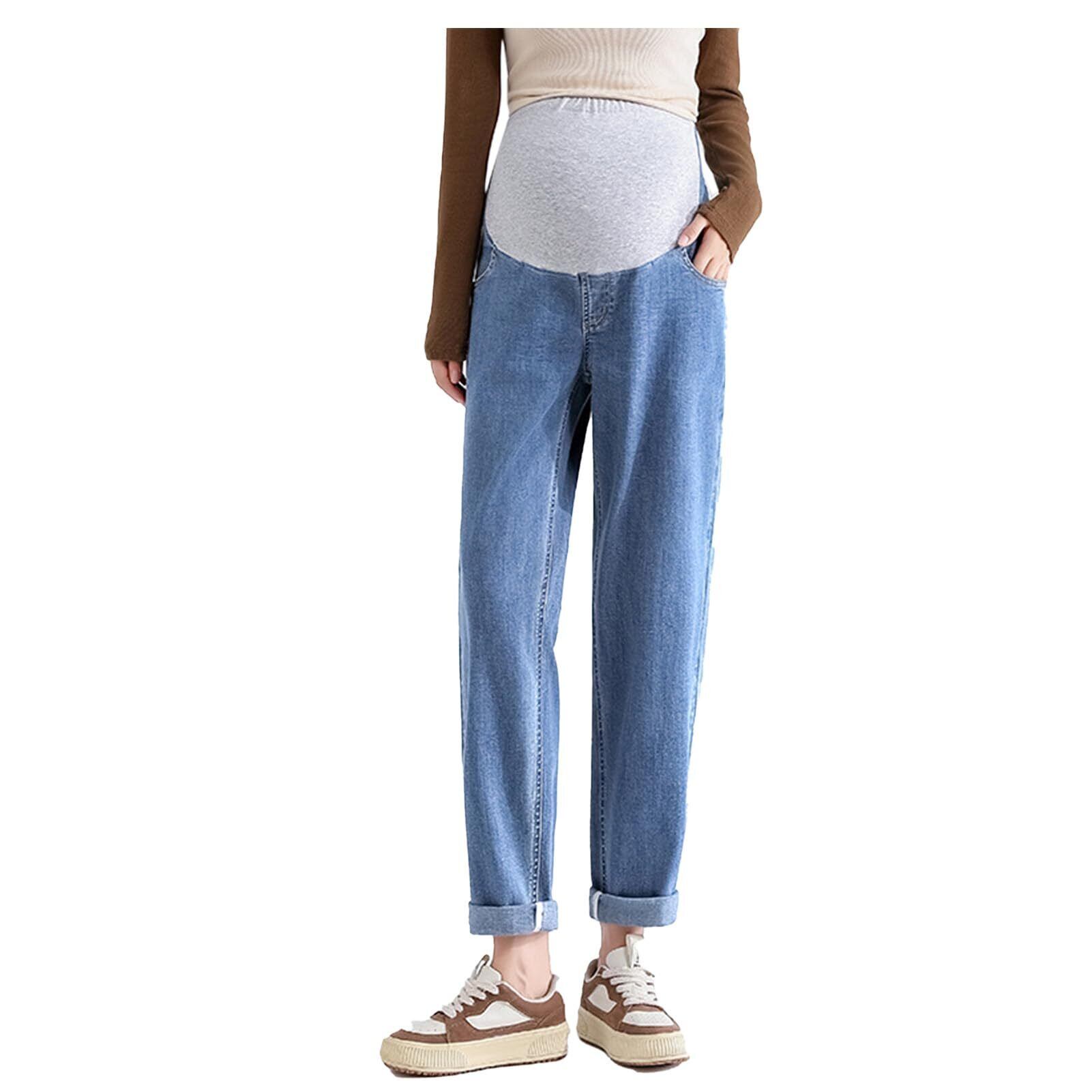 【在庫処分】[Onabebi] マタニティパンツ 妊娠のズボン ジーンズ デニム ウエスト調整 ポケット付き 美ライン カジュアル 足長効果 薄手 体型カバー 着痩せ効果