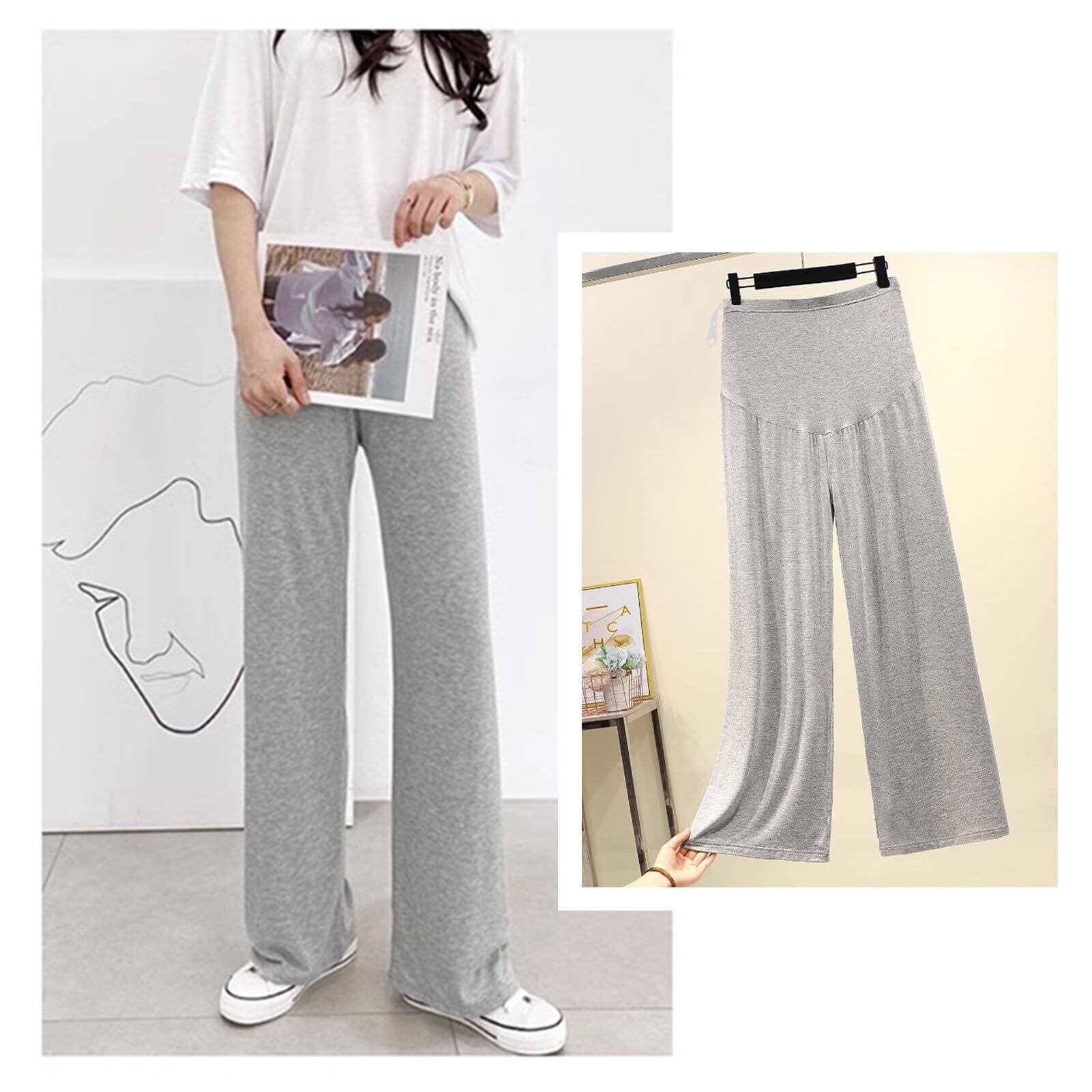 【2022最新】[Onabebi] マタニティパンツ パジャマ 妊娠服 部屋着 外出服 ズボン 産前産後 アジャスター付き 家着 モダール素材 ウェスト調整(改良後)