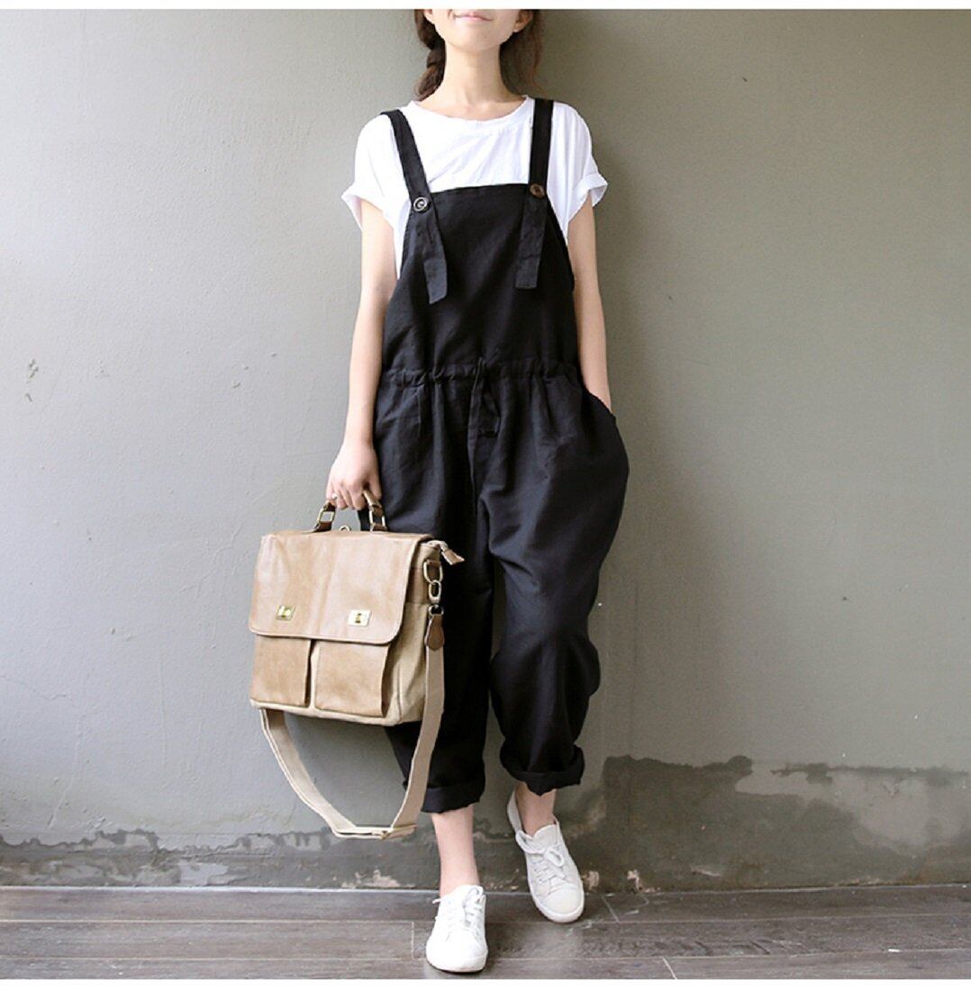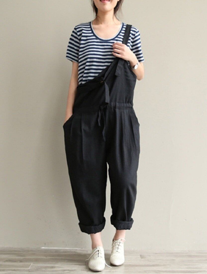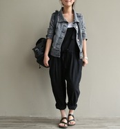 【商品概要2】 肩ベルト部分はボタンタイプで調整可能です。穴をあけて自分好みにカスタマイズもできます。ポケットもついているので、携帯や小物を入れてちょっとお出かけにも便利です。裾をロールアップすれば、お洒落さと可愛い感じがアップします。ゆったりとしたオールインワンなので、マタニティ用として妊婦の方にもおすすめです。体系カバーや体型隠しにも期待できます。
