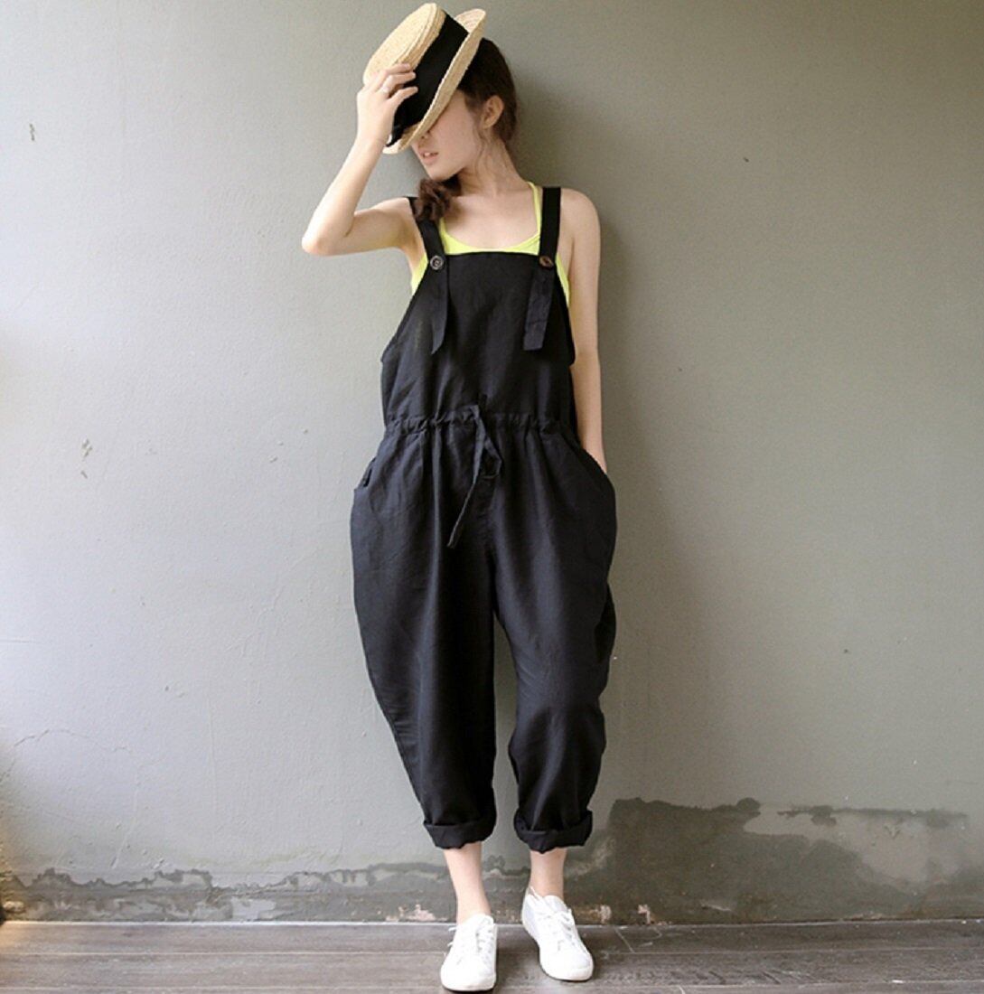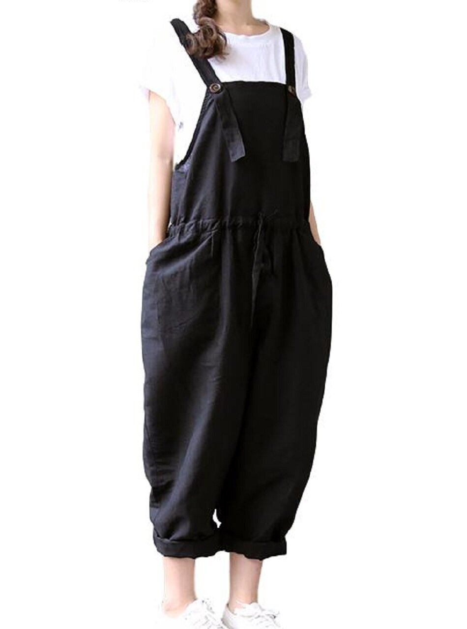 【人気商品】[ジルア] サロペット サルエル パンツ 留めボタン オーバーオール M ~ 3XL 黒 ブラック ゆったり シンプル 大きい サイズ レディース #023