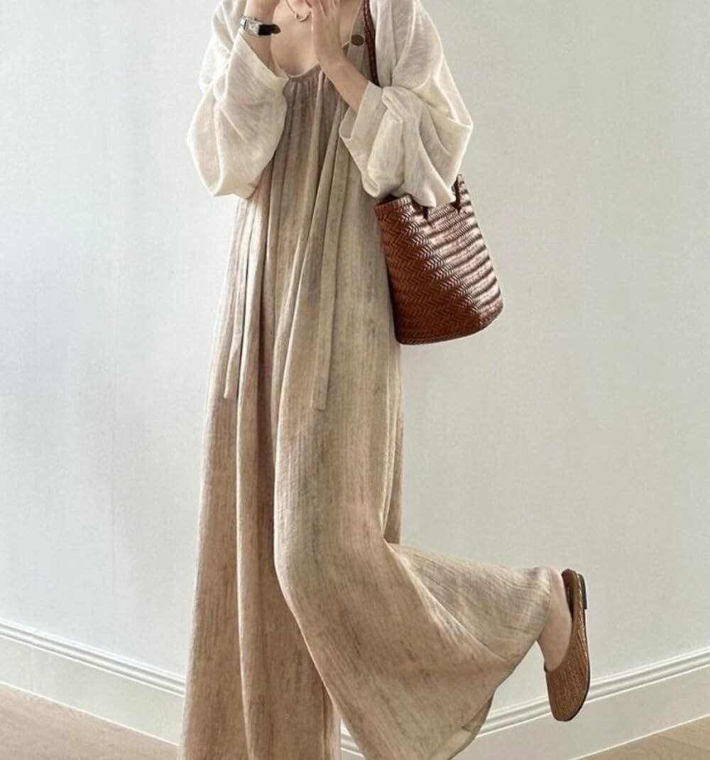 体型を優しくカバーするゆったりシルエットで着痩せ効果