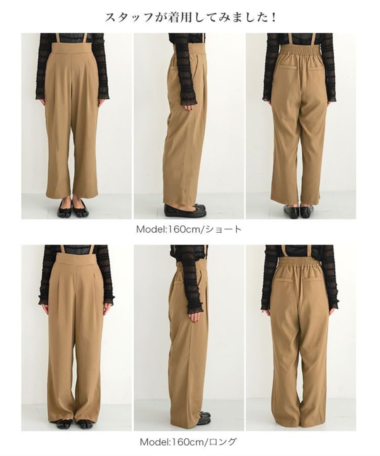 【OneSize】 [ショート丈] ウエスト(ゴム) 約34-40、ヒップ 約50、わたり 約35、股上 約33、股下 約65、裾幅 約27、総丈 約95 [ロング丈] ウエスト(ゴム) 約34-40、ヒップ 約50、わたり 約35、股上 約33、股下 約72.5、裾幅 約27、総丈 約102.5 ※平置き採寸のため若干のブレがございます。