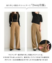 低身長スタッフが考えた渾身の2wayサロペット。 ほどよいゆとりと美シルエットが魅力のタックパンツに、取り外し可能なサスペンダーをプラス。 ウエストまわりはすっきり見えつつ、体型をさりげなくカバーしながら脚長効果も。 サスペンダーでマニッシュにも、取り外してシンプルにきれいめにも着こなせる2way仕様。 ショート丈の展開があり、低身長さんにもバランス良く着こなせるのが嬉しいポイント。 オンオフ問わず活躍し、カジュアルからきれいめコーデまで幅広く対応します。