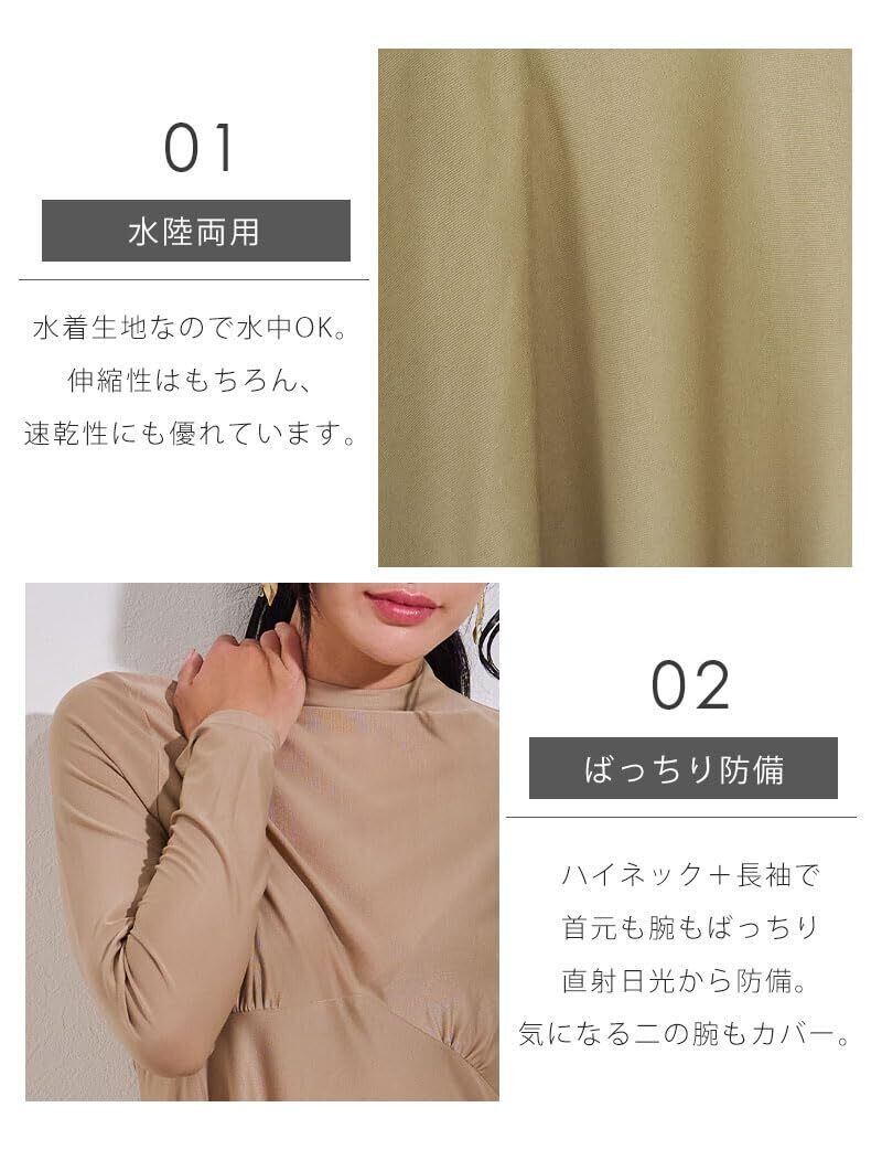 ハイネック+長袖で直射日光から防御。気になる二の腕もカバー。
