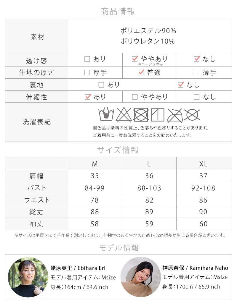 サイズ(cm): M(身幅35,バスト84-99,ウエスト78,総丈88,袖丈58), L(36,88-103,82,89,59),XL(37,92-108,86,90,60)