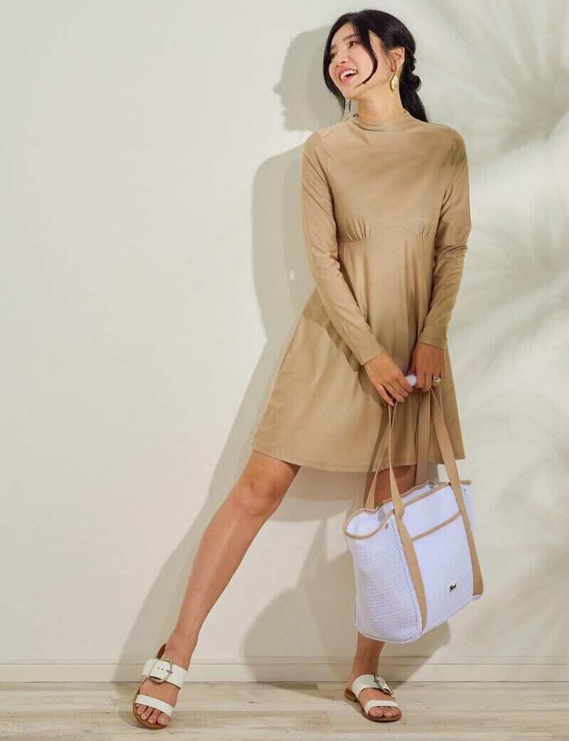 胸下の切り替えからふんわり広がるAラインで体型カバー 水中アクティビティだけでなく、ヨガなどの陸上スポーツにもおすすめですよ