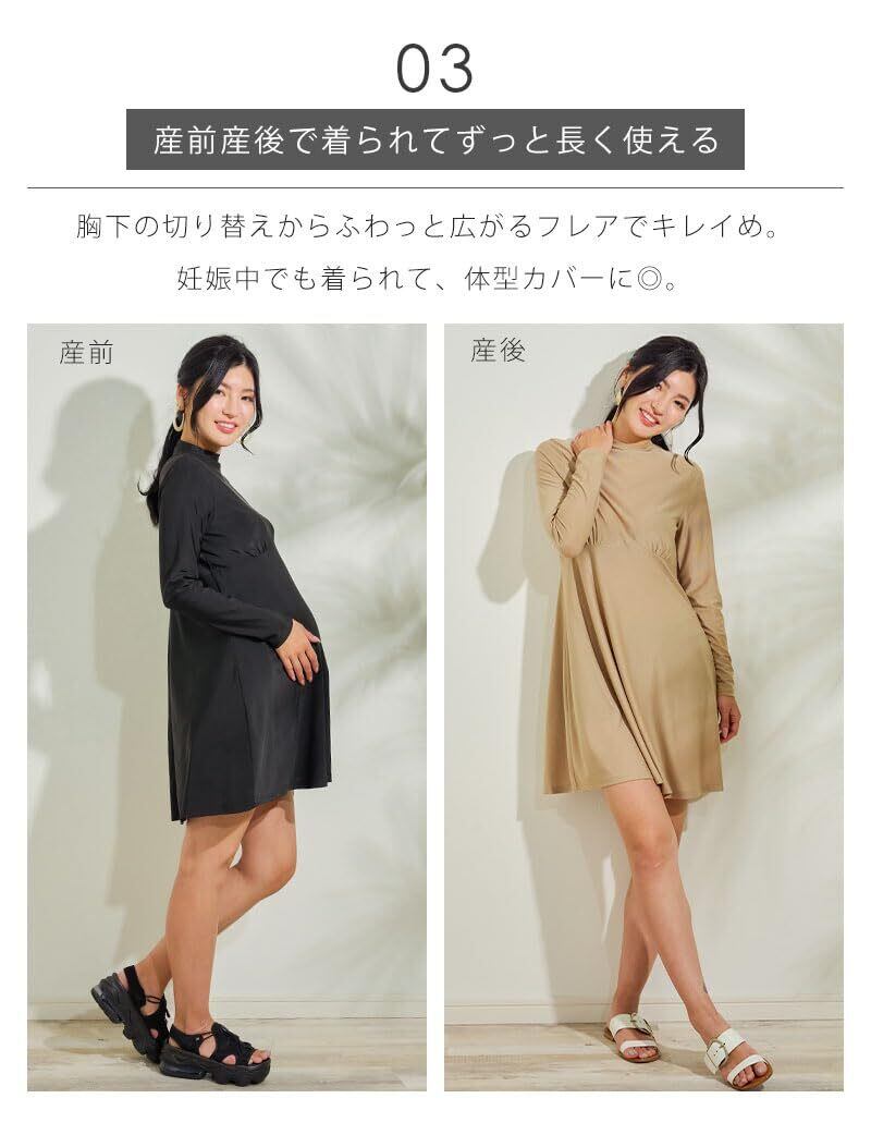 [スウィートマミー] Sweet Mommy マタニティ水着 ラッシュガード ワンピース ボトルネック 長袖 UV対策 日焼け対策