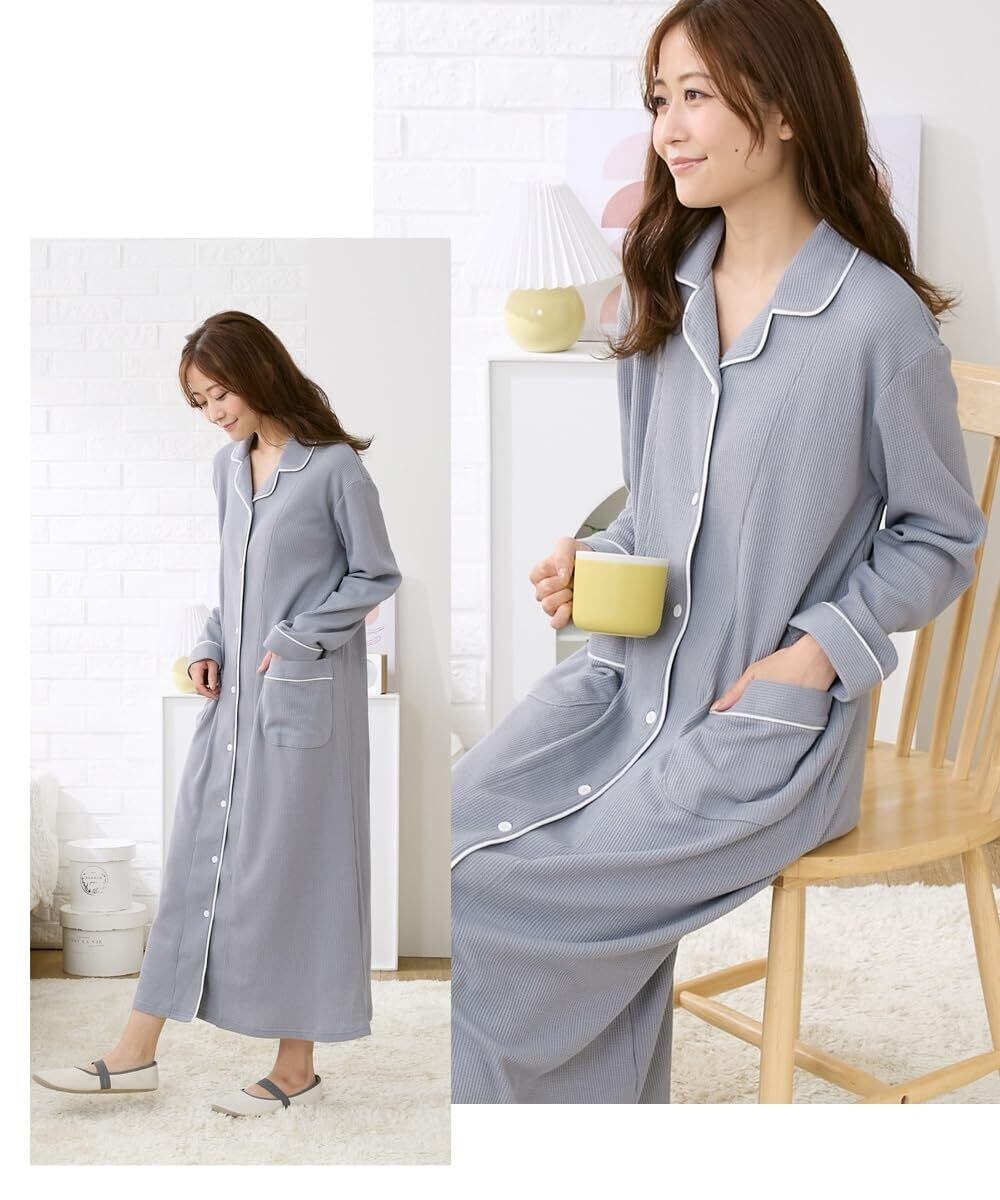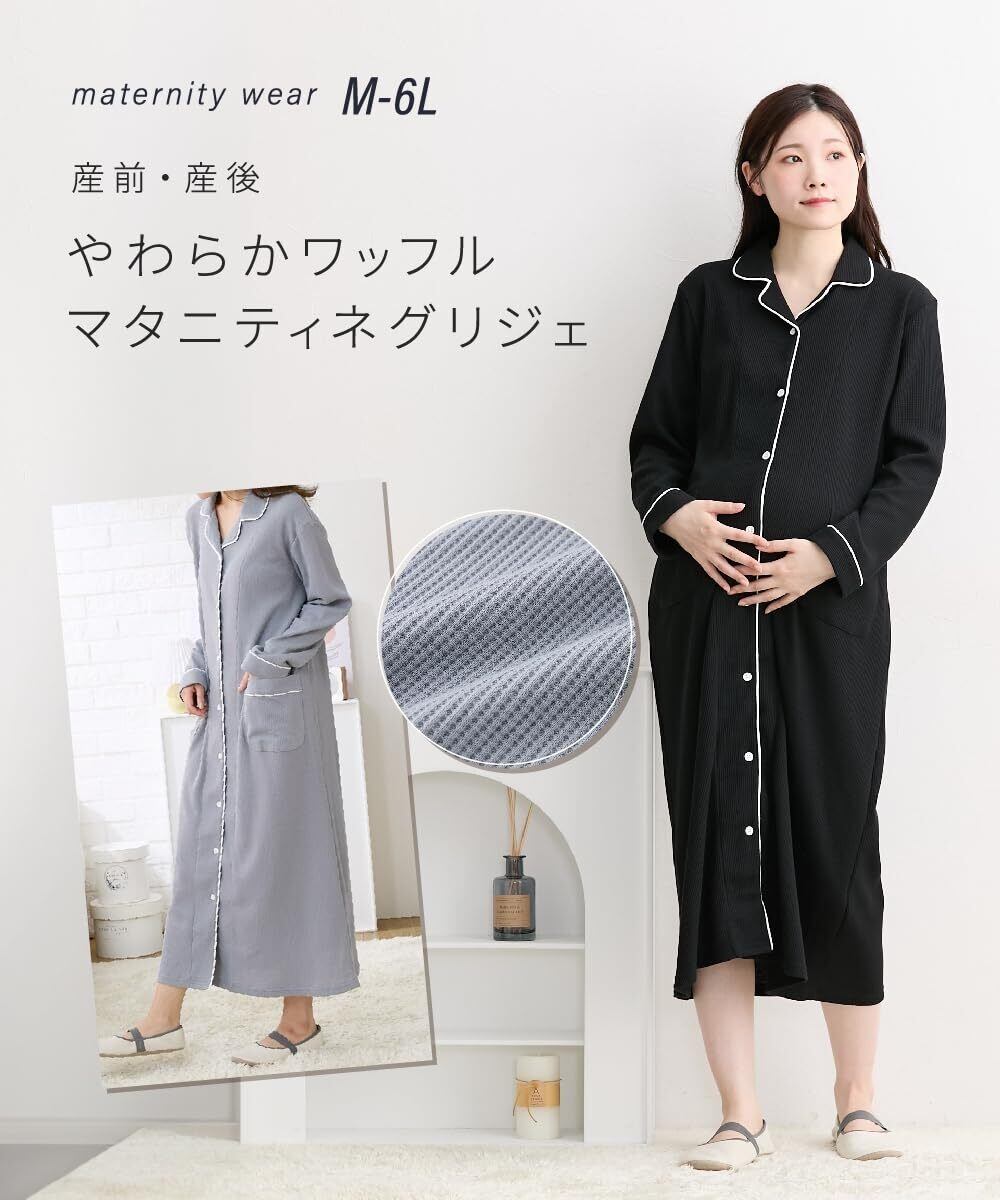 [ニッセン] マタニティルームウェア・パジャマ レディース 【マタニティウェア・授乳服】 ワッフル 前開きマタニティネグリジェ(産前・産後)