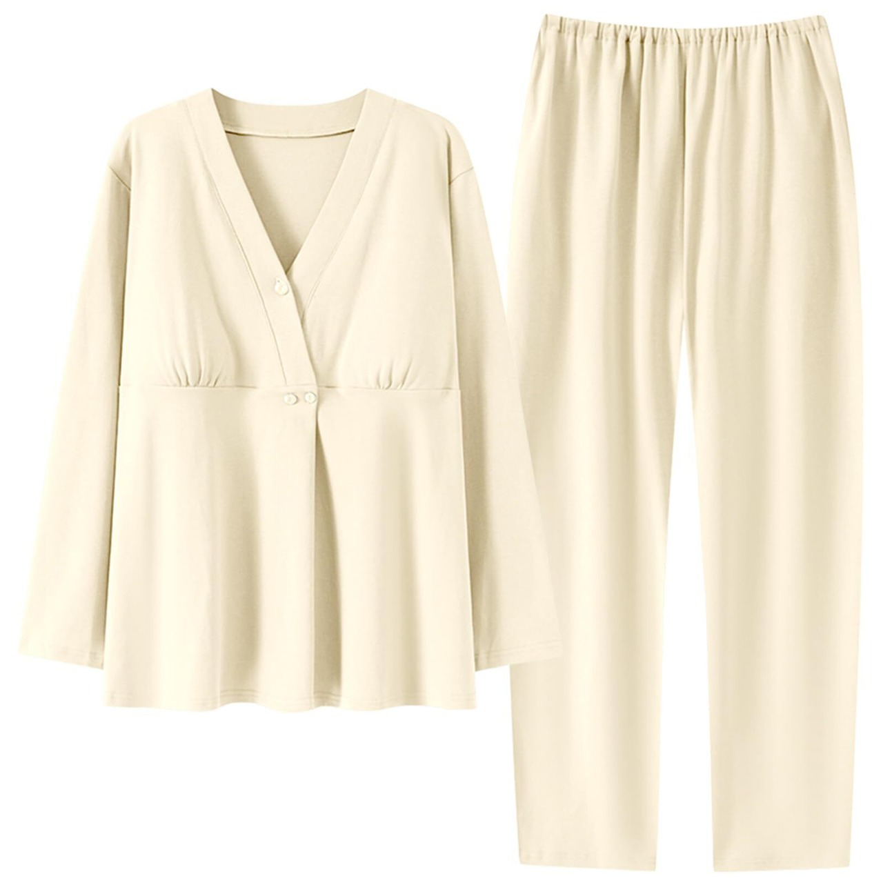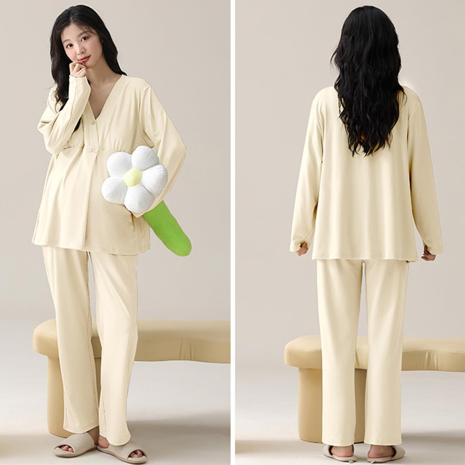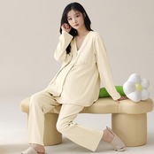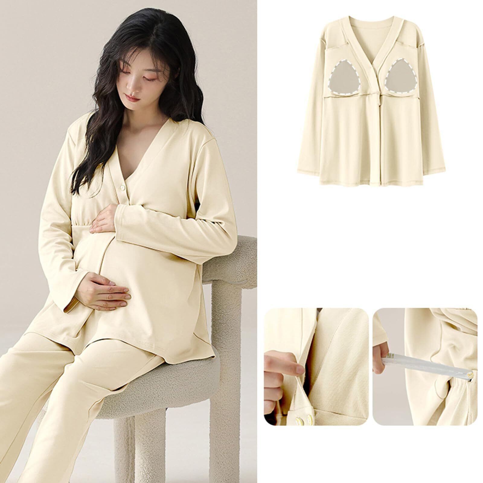 [Kyonuza] マタニティ パジャマ 長袖 綿100 前開き ルームウェア 春秋 簡潔風 肌に優しい かわいい 長袖 部屋着 パッド付き 吸汗通気 大きいサイズ 寝間着 お泊まり服 ゆったり 女性 産前 産後