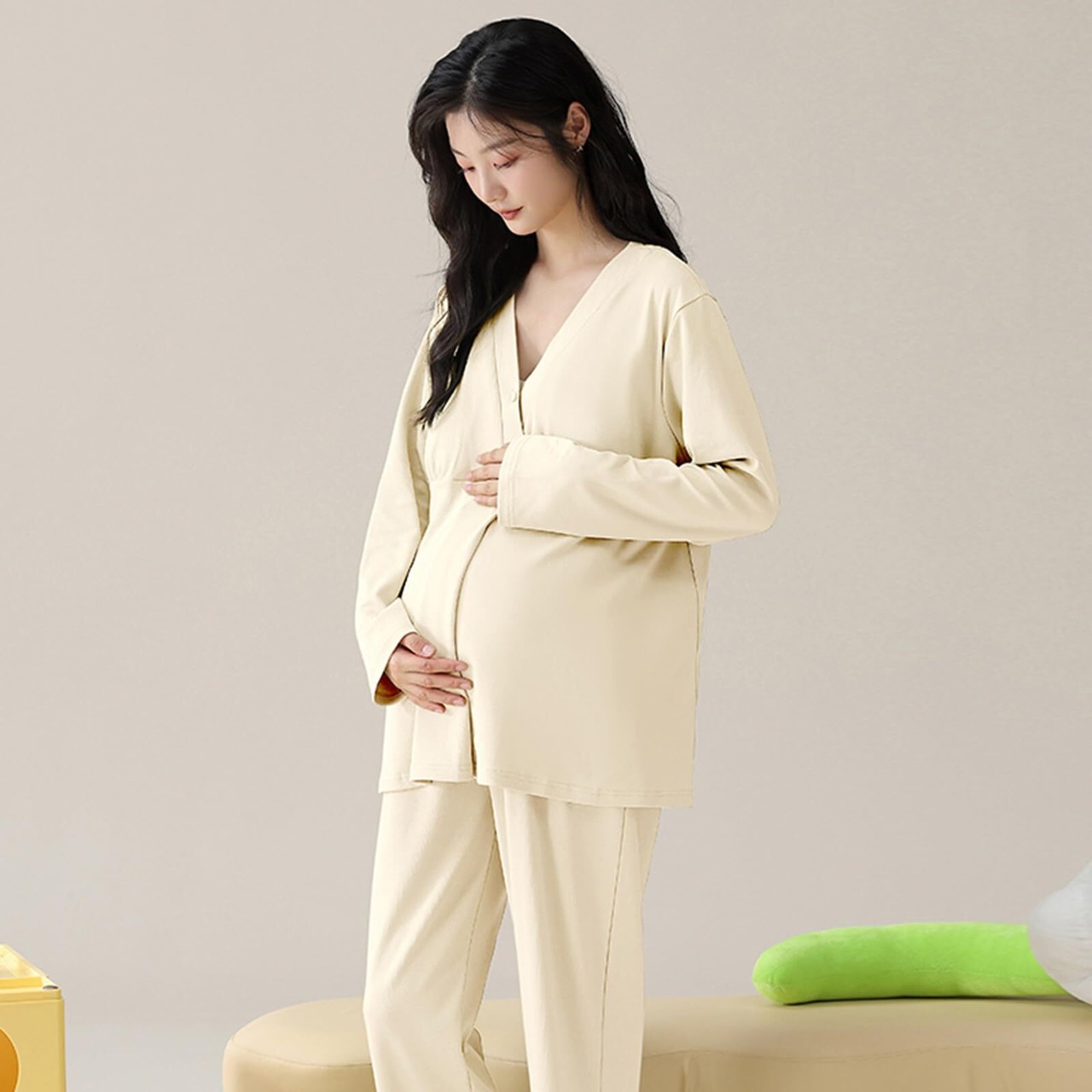 【マタニティパジャマ】動きやすくて見た目もシンプル、楽ちんで可愛いが、家ではリラックスが叶います。リット式授乳口で目立たず楽々授乳ミルク汚れが目立ちにくい薄めのカラー展開も嬉しい