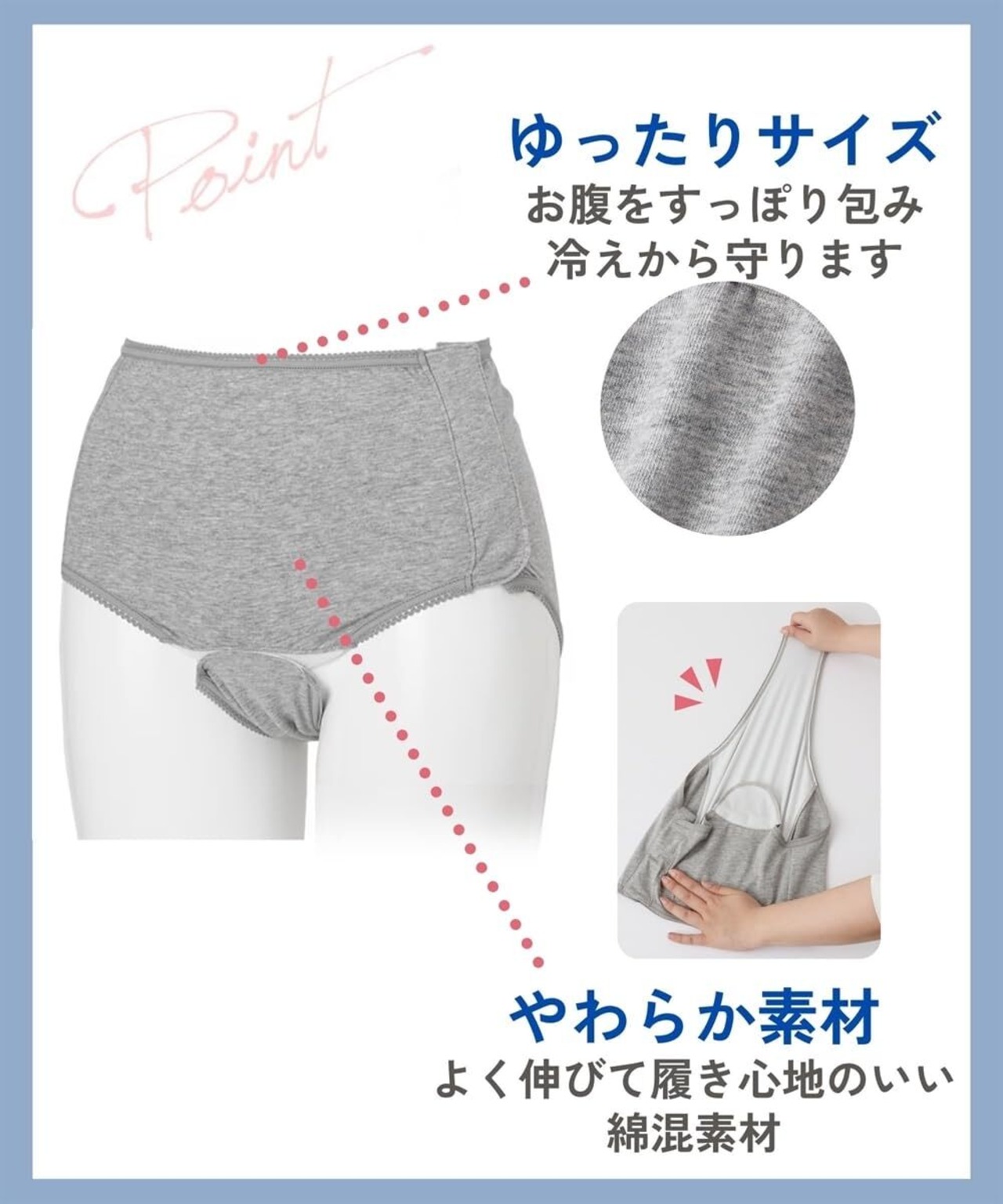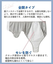 足を通さなくても着脱できる全開するタイプなので、帝王切開や入院、介護にも対応!
