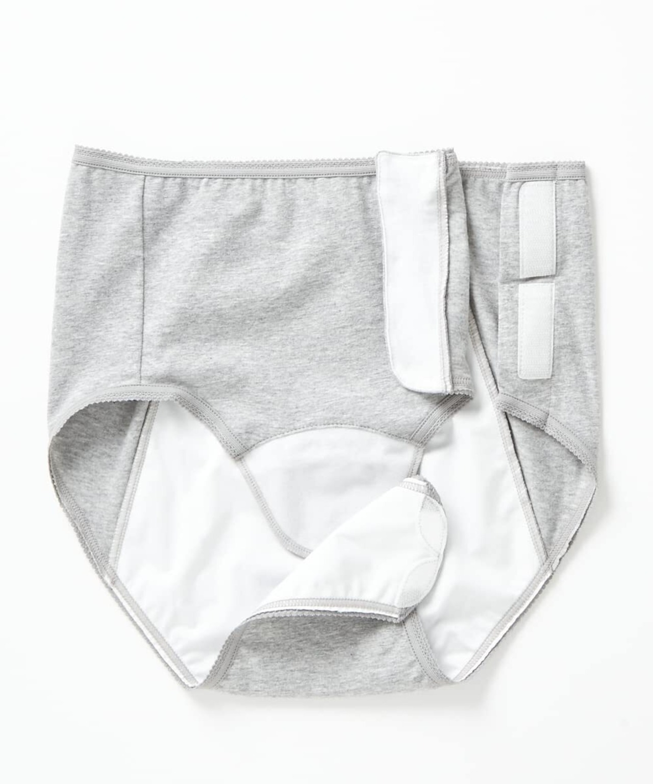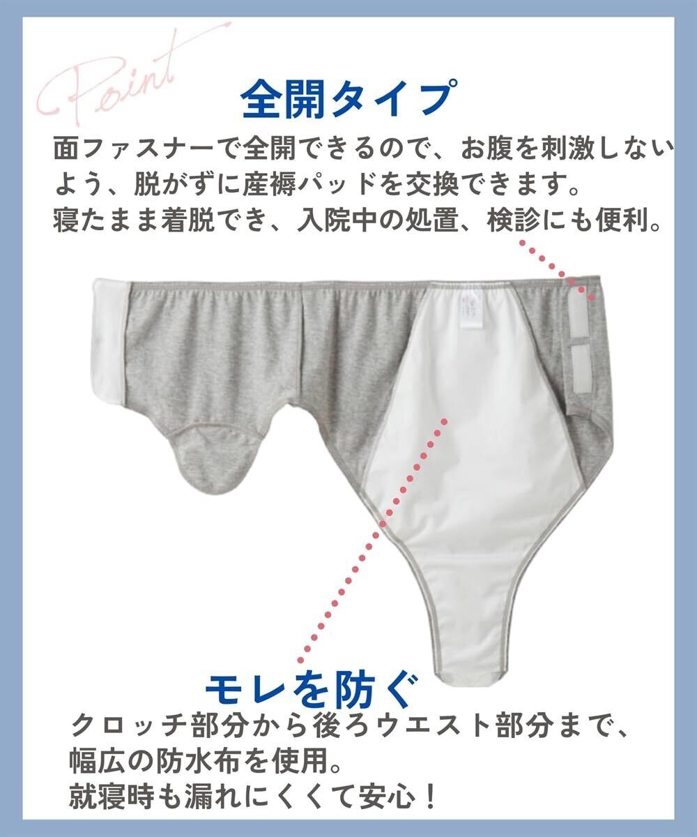 クロッチ部分とサイド部分が面ファスナーで開閉できるため、産後のケアや診察がスムーズに行えます。