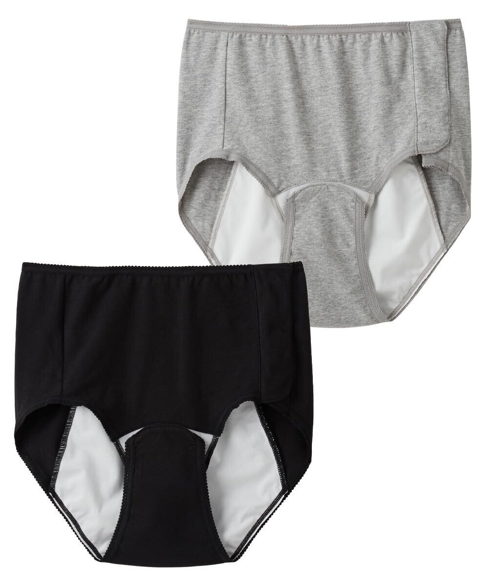 クロッチ部分とサイド部分が面ファスナーで開閉できる産褥ショーツ2枚組です。