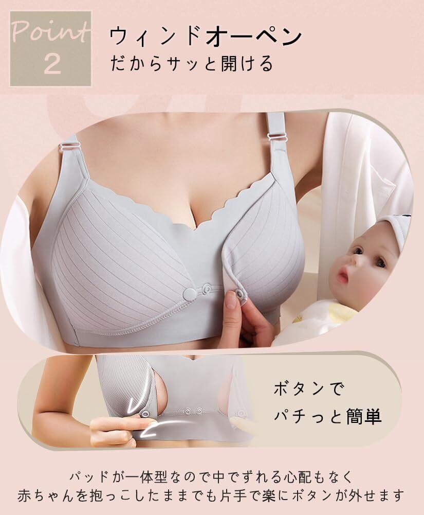 【マタニティブラ 前開き】カップだけが窓のように開くから、サッと開けて授乳できます。ブラのズレの心配も無し、一日何度も授乳するママに遠慮したデザインです。