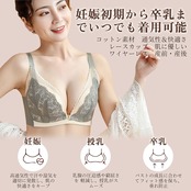 3.【マタニティブラ】跡がつきにくいモールドカップを採用し、ワイヤーリングなしの設計で産前から産後まで長く使えます。 伸縮性に優れ、滑らかな肌触りで、蒸れやすい胸元を一年中快適でさわやかな状態に保ちます。