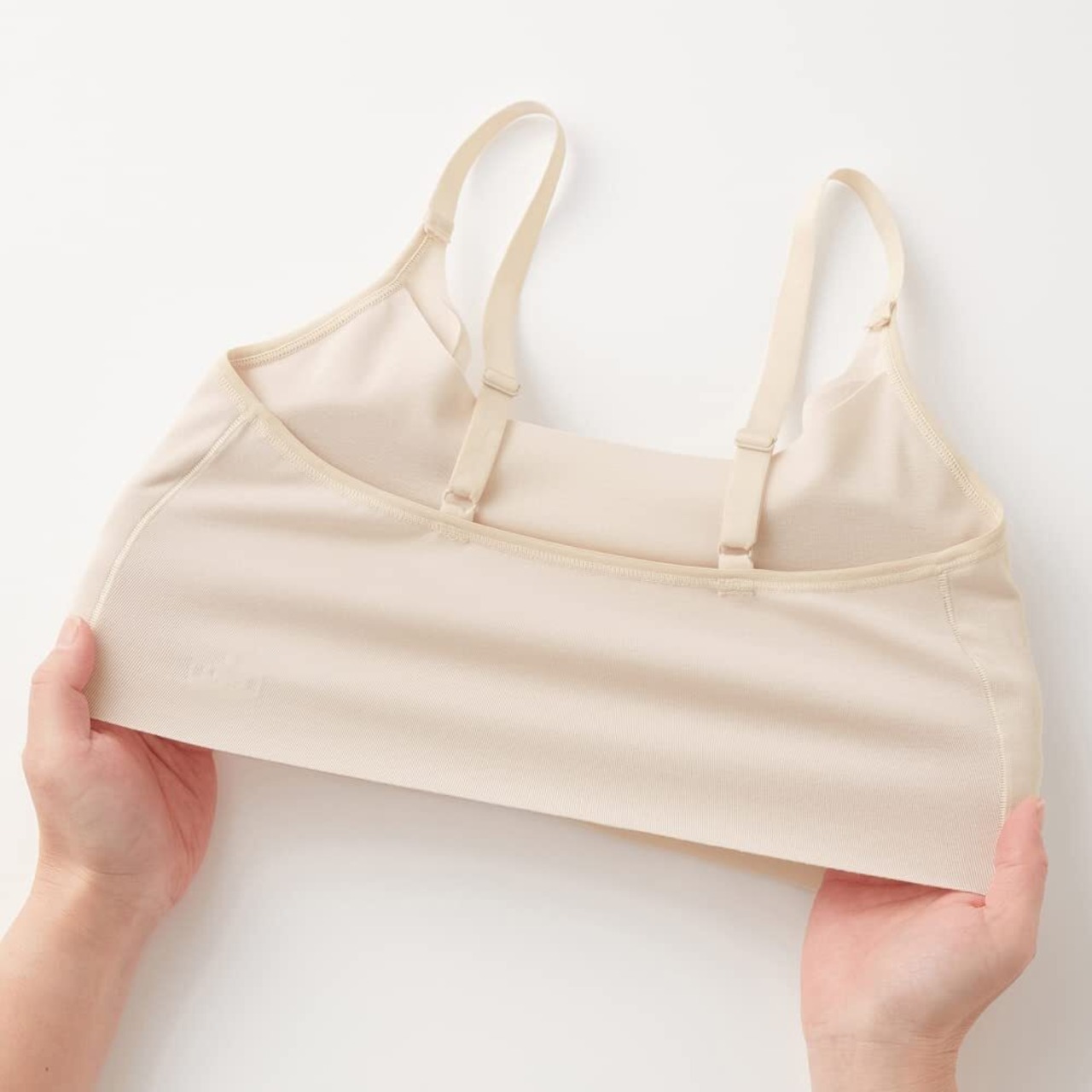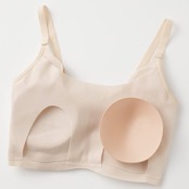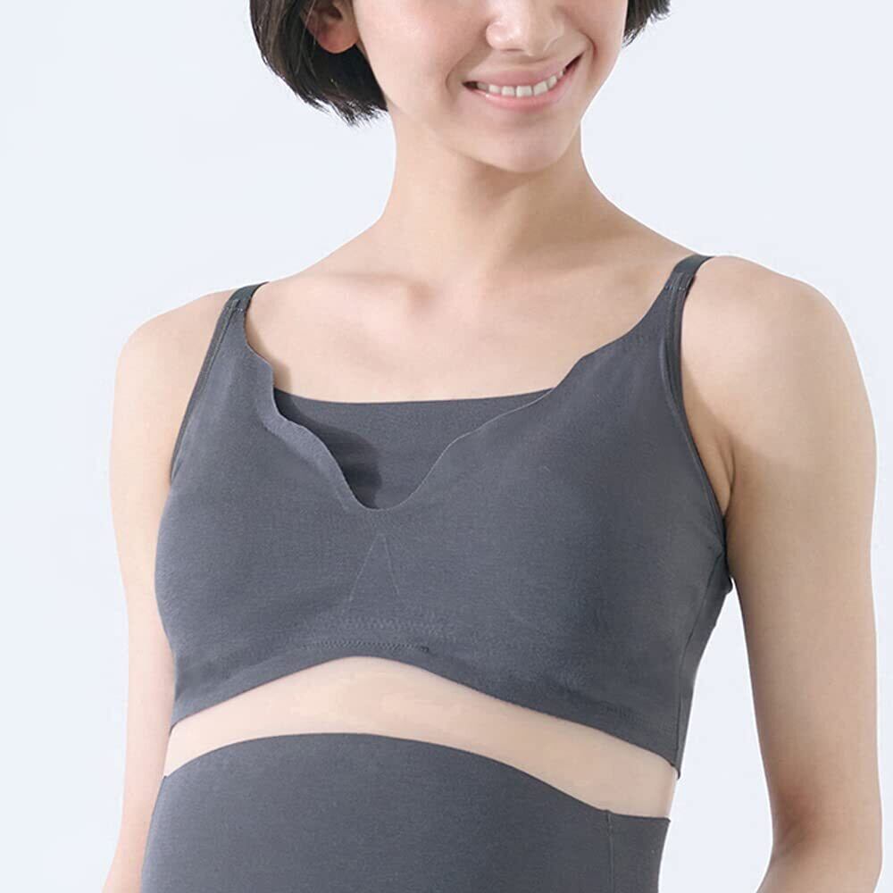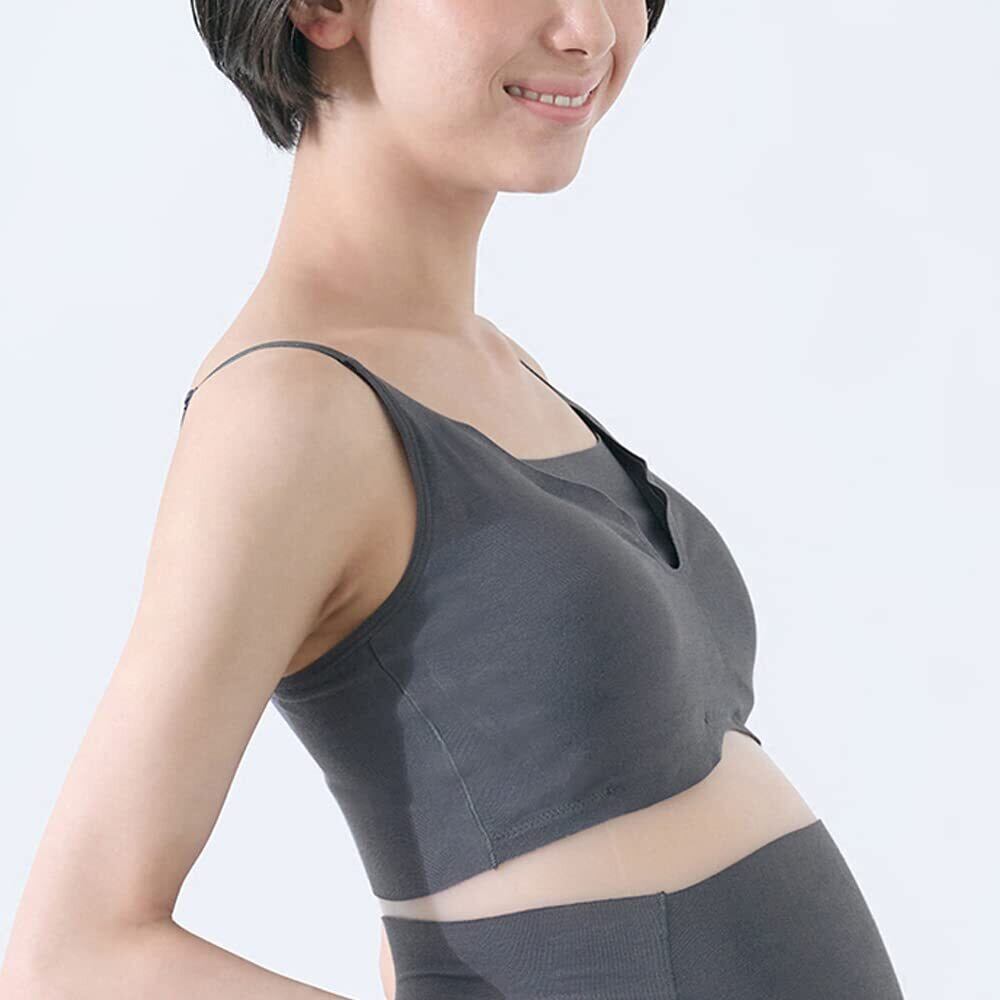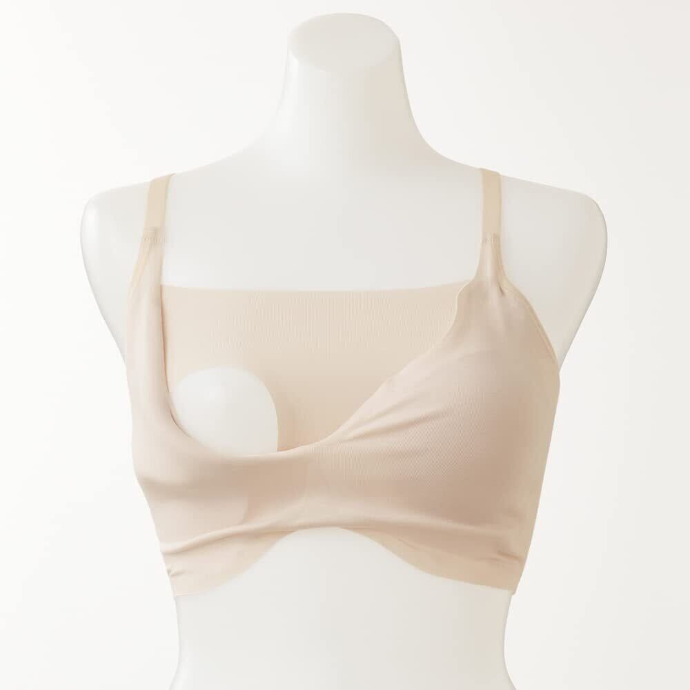 ・カップ周辺に縫い目が無い・切りっぱなし素材でゴムをできる限り無くした設計・胸をすべてださなくても授乳ができる設計・二つに折れるパッドを採用・保湿加工