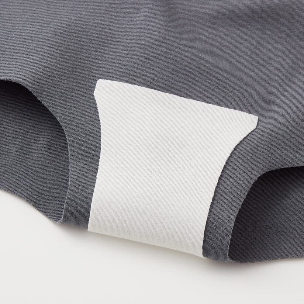 妊娠後期から産後、様々な体調変化がおこる中、シック部分にはトラブルを緩和できる機能をつけたり、分泌物の変化を確認できるようにマチ生地を白にしました。また腹部周囲のゴムを無くすことで快適にすごしていただけるよう設計しました。