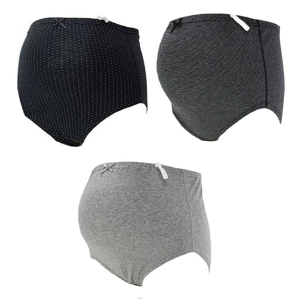 ローズマダム 肌にやさしい マタニティショーツ 綿100%でノンストレスの履き心地 ウエストゴム調整 お得な3枚組 7309 D-ブラックドット、グレー無地、ブラックボーダー M-L
