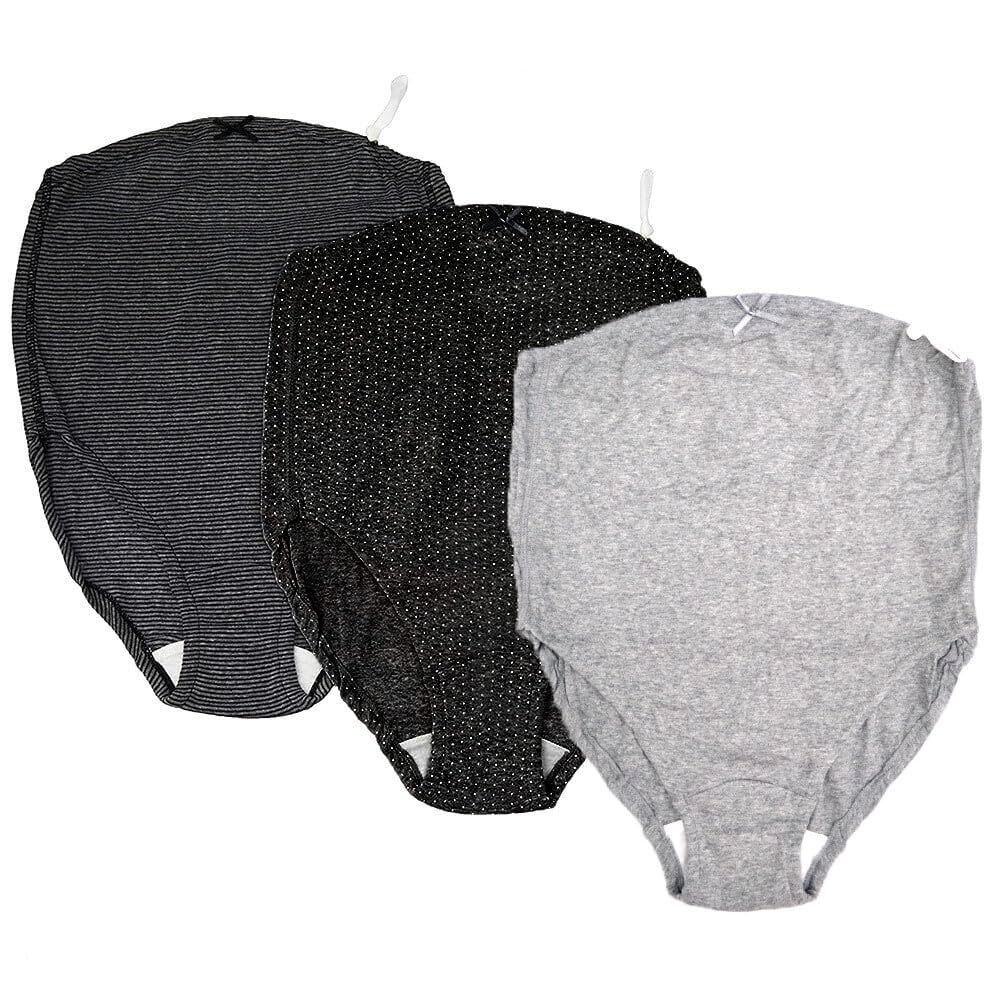 【在庫処分】ローズマダム 肌にやさしい マタニティショーツ 綿100%でノンストレスの履き心地 ウエストゴム調整 お得な3枚組 7309 D-ブラックドット、グレー無地、ブラックボーダー M-L
