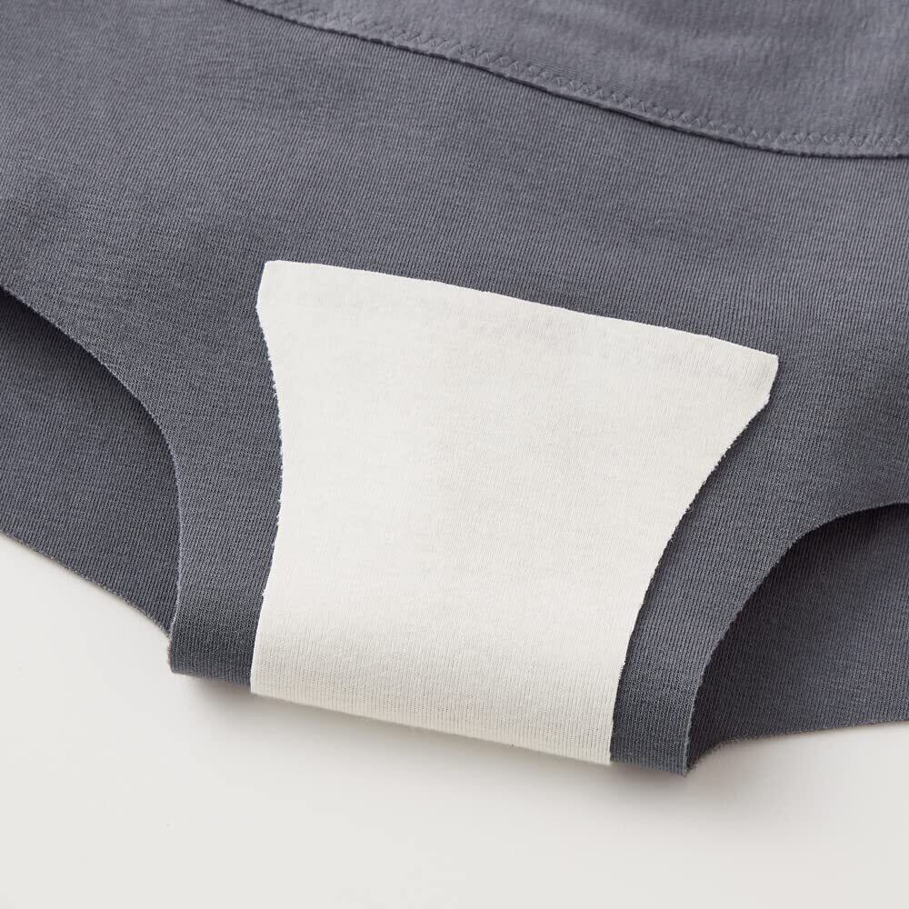 妊娠後期から産後、様々な体調変化がおこる中、シック部分にはトラブルを緩和できる機能をつけたり、分泌物の変化を確認できるようにマチ生地を白にしました。また腹部周囲のゴムを無くすことで快適にすごしていただけるよう設計しました。