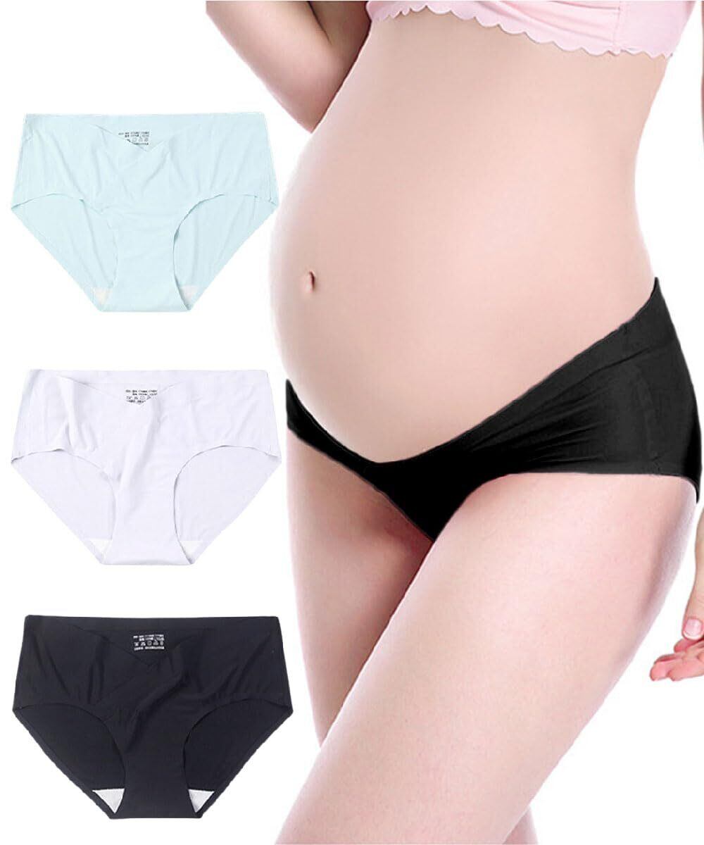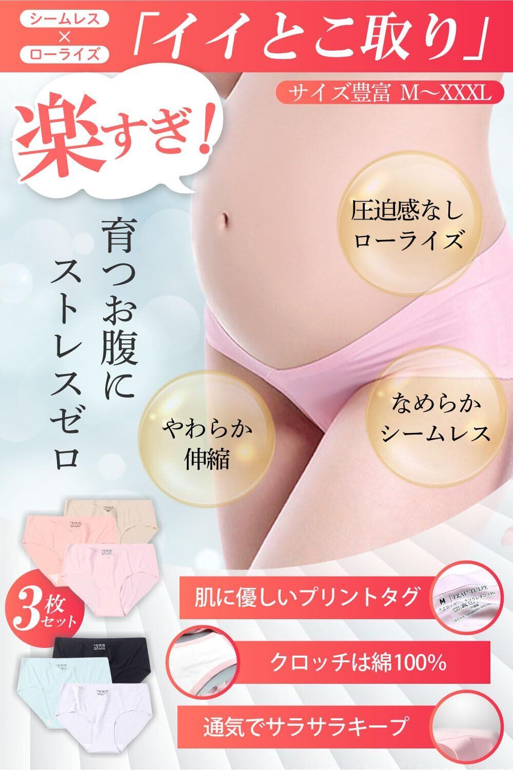 [Booberg] マタニティショーツ セット ローライズ シームレス 大きいサイズ 【チクチクしないシームレス素材xクロッチ部分綿100%x3枚セット】