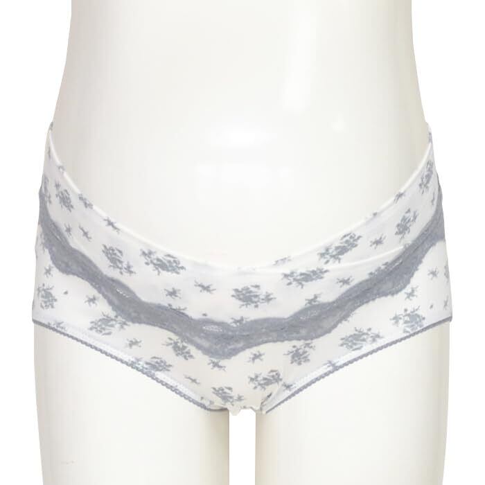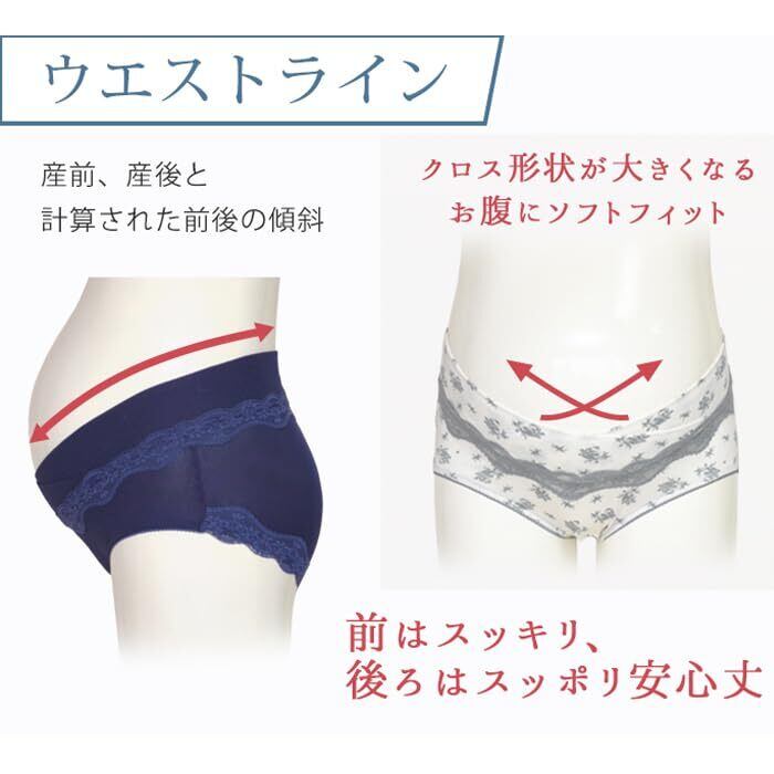 ゴムを使用せずパワーネットを身生地で包んだ広幅のウエストベルトは、大きくなるおなかに面でソフトフィット。身体にやさしい仕様です。浅ばきタイプのショーツなので、みぞおちあたりの不快な締めつけから解放され楽ちん。健診のエコー時にもスムーズです。計算されたウエストラインでフロントをすっきり見せ、後はヒップをすっぽり包む安定感のあるバックスタイル。妊娠中から出産後も長くご使用いただけます。ヒップレースは直接肌に触れにくい生地の上に重ねる仕立てに。見た目も機能も充実のアイテムです。