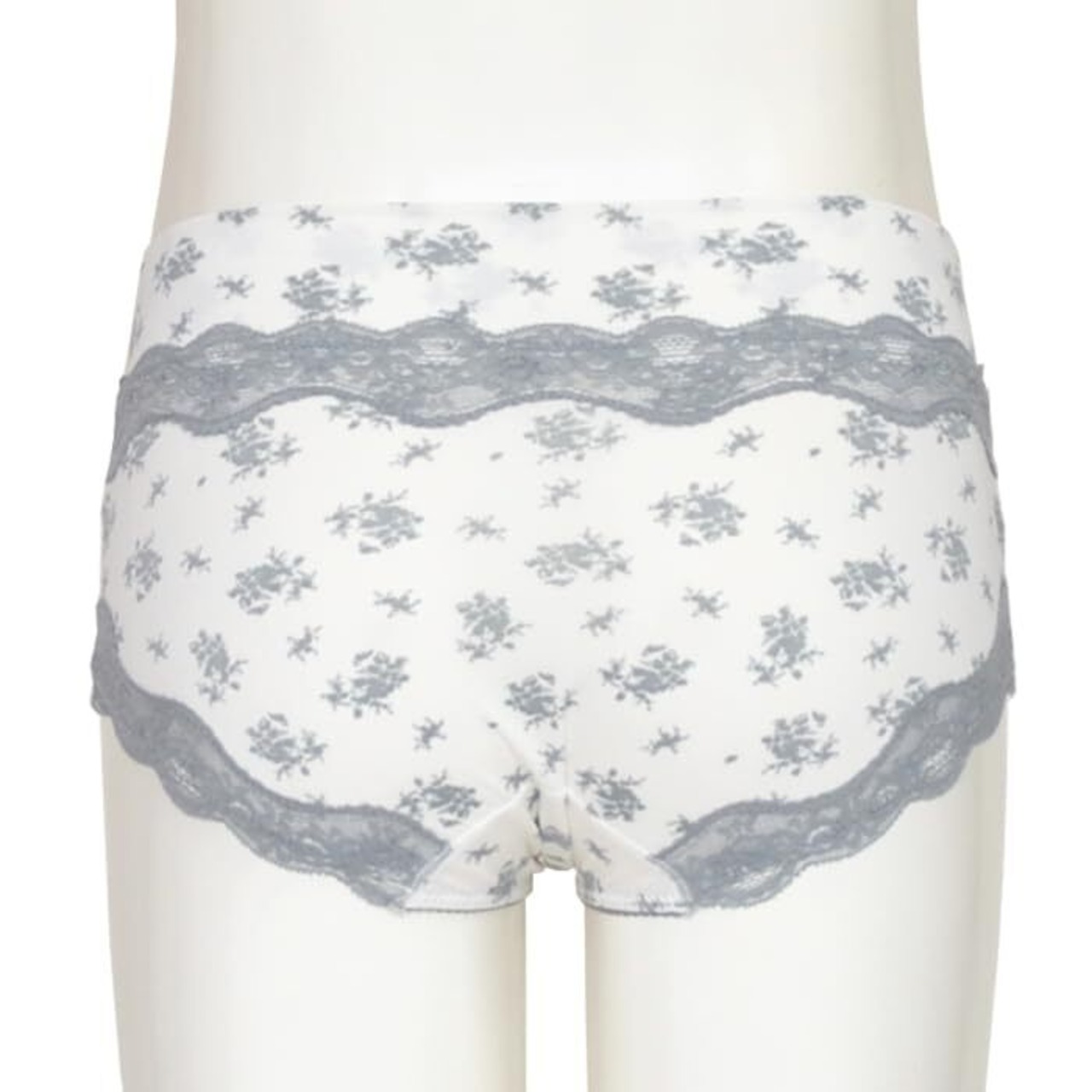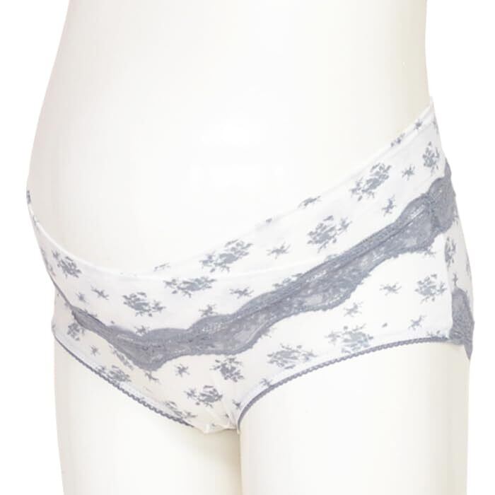 ラグジュアリーなレースを贅沢にあしらった、クロス形状のウエストベルトが特徴の産前産後兼用ショーツ