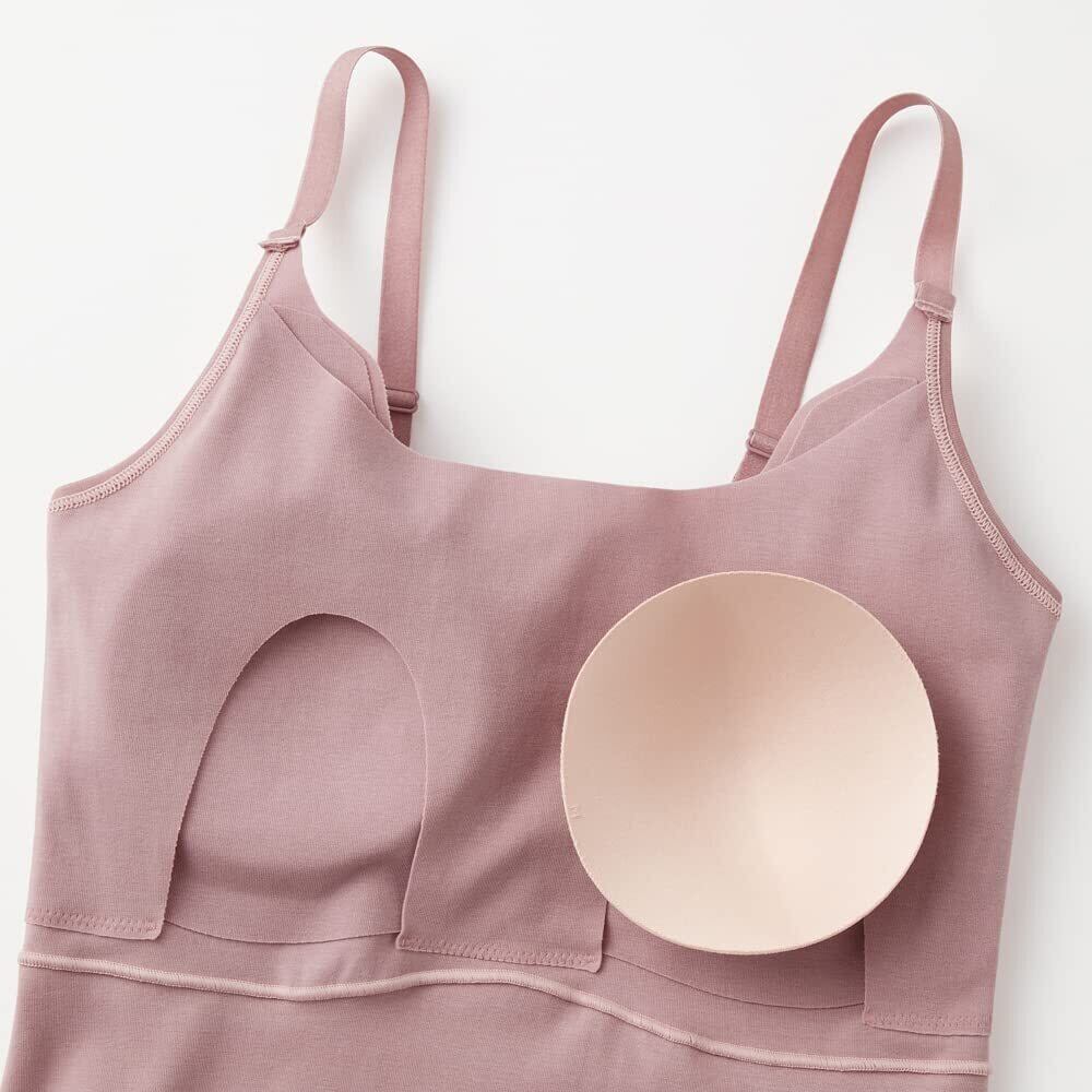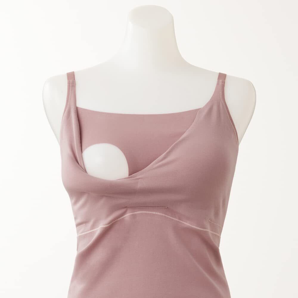 ・カップ周辺に縫い目が無い・切りっぱなし素材でゴムをできる限り無くした設計・胸をすべてださなくても授乳ができる設計・二つに折れるパッドを採用・保湿加工
