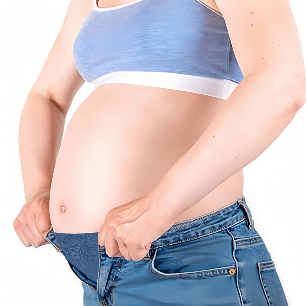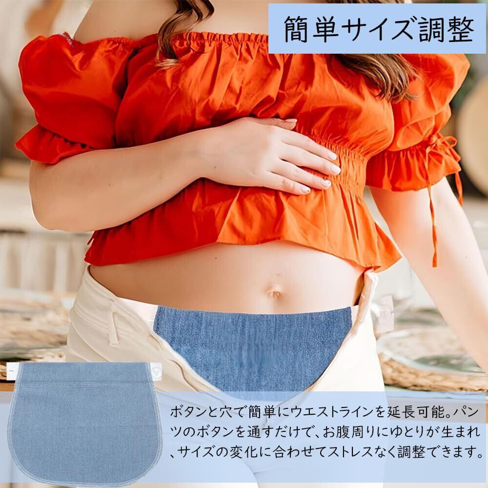 【簡単サイズ調整】ボタンと穴で簡単にウエストラインを延長可能。パンツのボタンを通すだけで、お腹周りにゆとりが生まれ、サイズの変化に合わせてストレスなく調整できます。