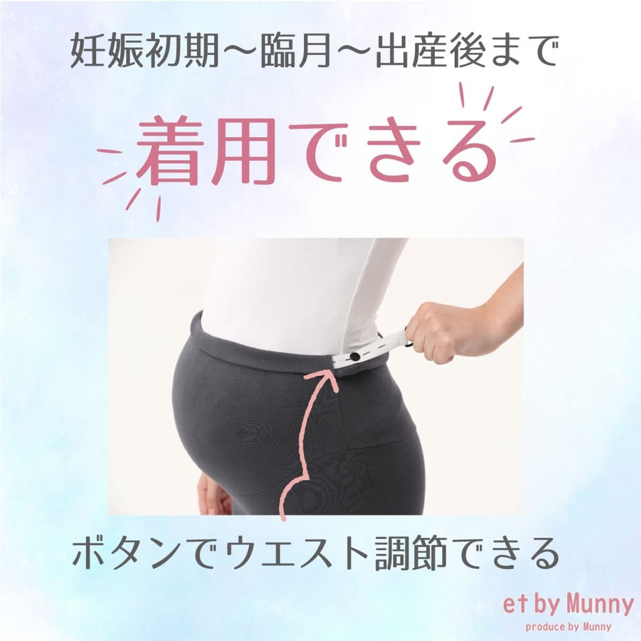 [et by munny] 【妊婦さんのための締め付けゼロ】日本企業企画 マタニティレギンス 綿 ストレッチ 産後でも履けるウエスト調節