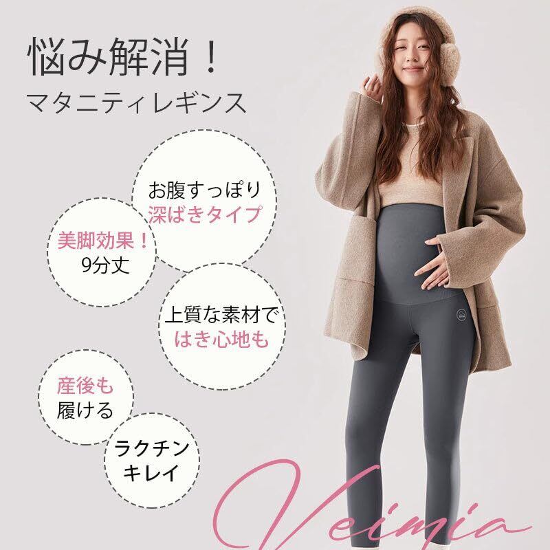 [veimia] マタニティレギンス 9分丈 ズボン シームレスで快適にフィットし 春 夏 秋用 無地 タイツ ヨガ ス スパッツ 伸縮性がよく 部屋着 ファッション おしゃれ 妊娠服 迫感もなくお腹を優しく支え 産前産後 妊婦 プレゼント