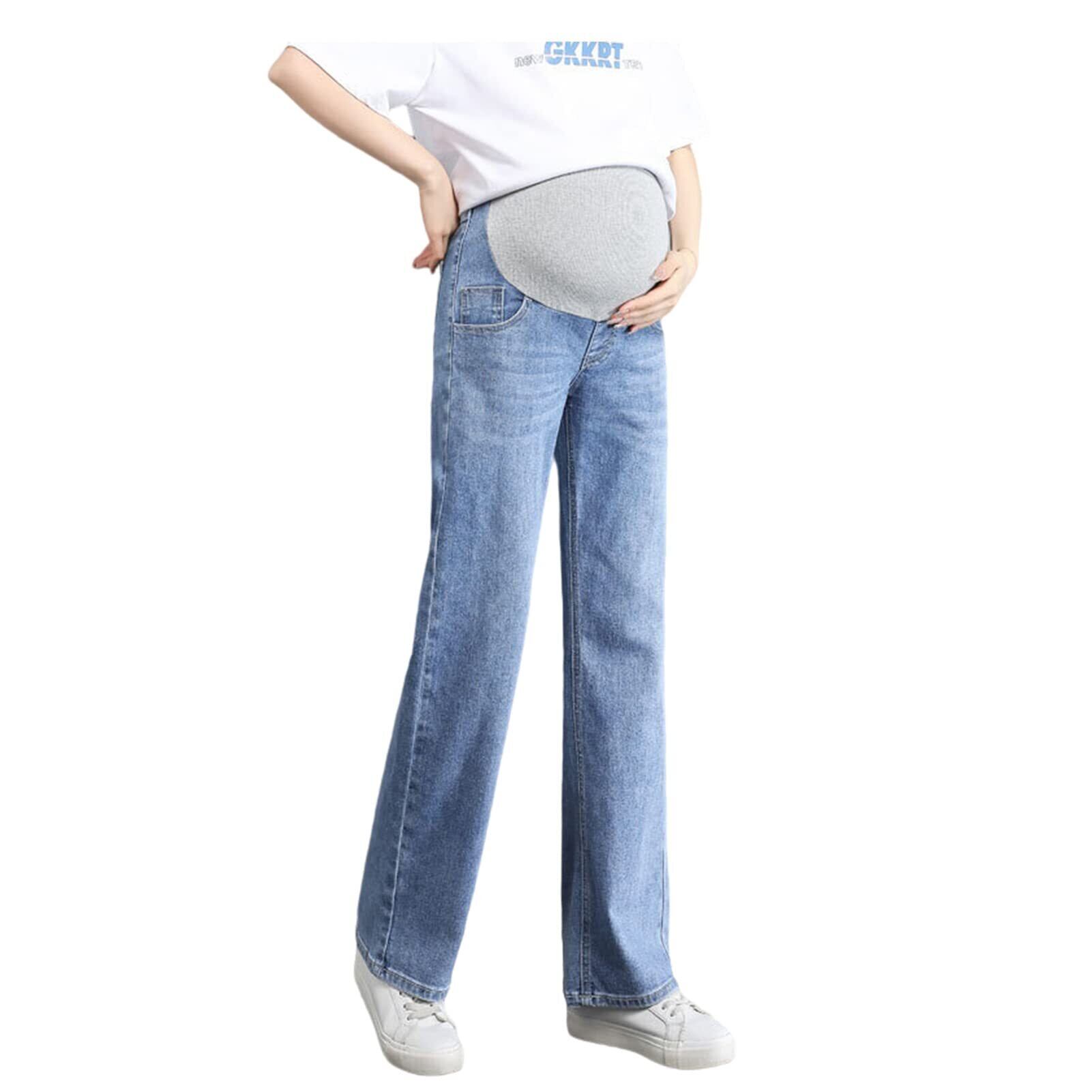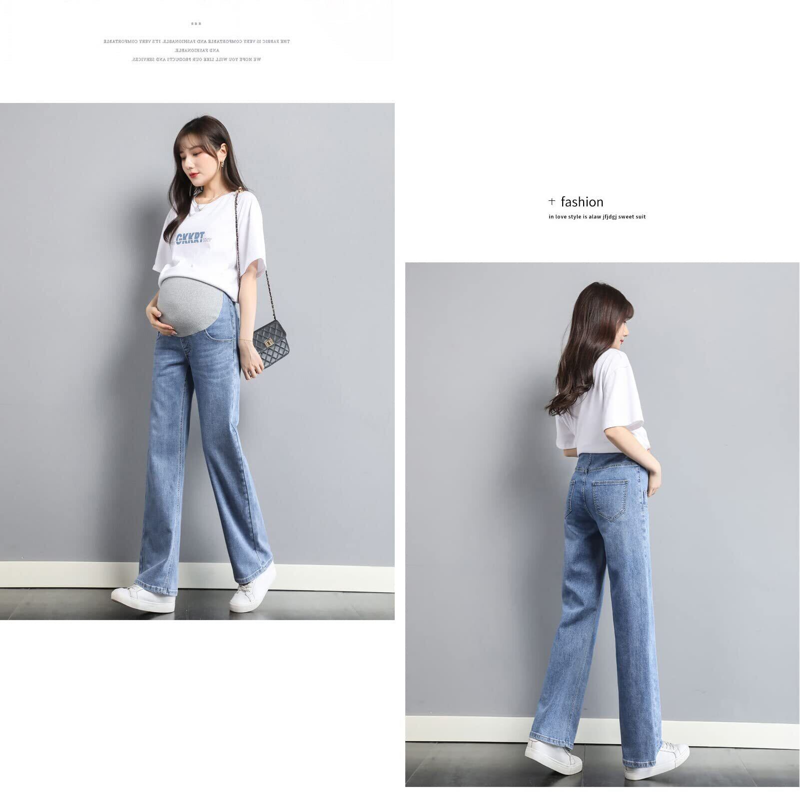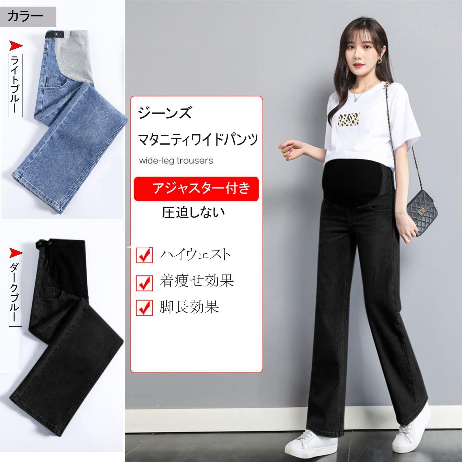 [Onabebi] マタニティパンツ ワイドパンツ ジーンズ 妊娠のズボン ウエスト調整 ポケット付き 体型カバー 足長効果 美感