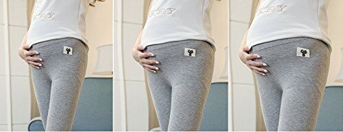 【特価商品】(Miwoluna) マタニティ レギンス スパッツ 9分丈 産前産後 ストレッチ素材 ウエストサイズ調整可能 猫タグ