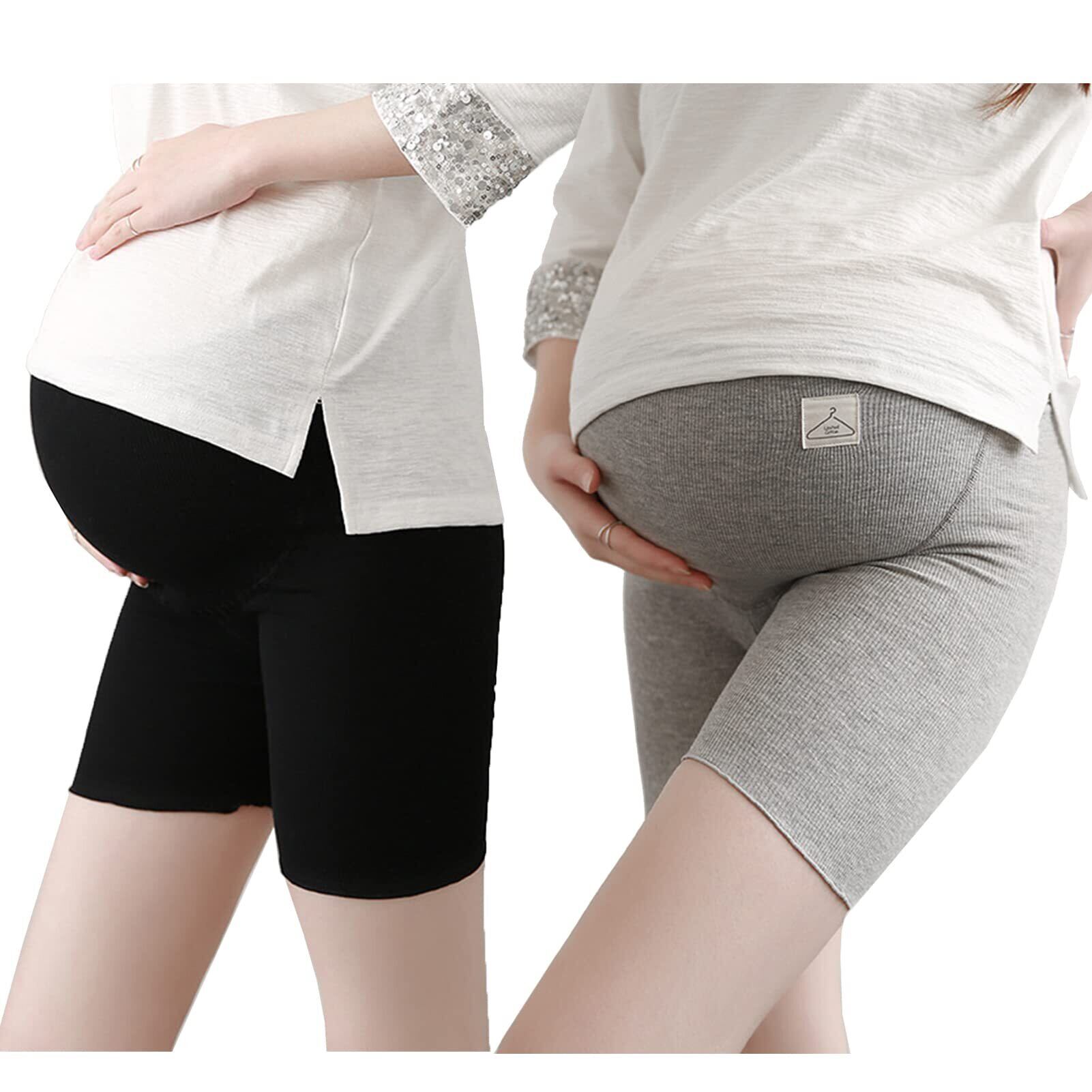 [Yangweng] マタニティレギンス 妊婦安全パンツ スパッツ ペチパンツ お腹支え 2枚セット接触冷感 通気 柔らかい生地 大きいサイズ 伸縮性 安全ズボン 夏 女性 美尻 無地 薄手 可愛い 産前 産後