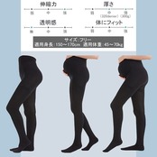 ウエストゴムでサイズ調節が可能なので、妊娠初期から後期の大きく変化するお腹にしっかり対応するマタニティ専用タイツです。