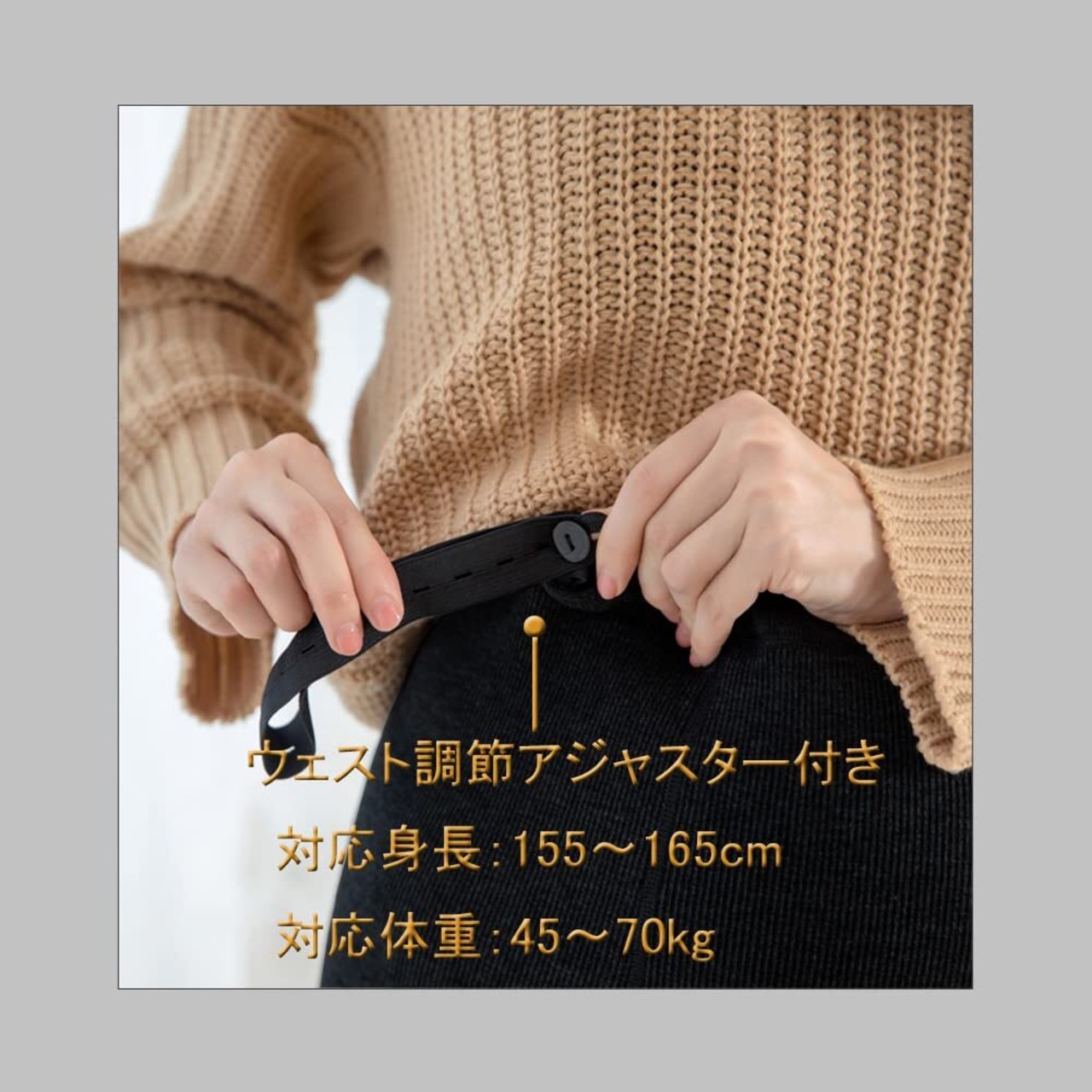 ウェスト調節アジャスター付き、大きくなったおなかを包み込み、おなか周りが苦しくならず、産前産後を通して長く履いて頂けます。